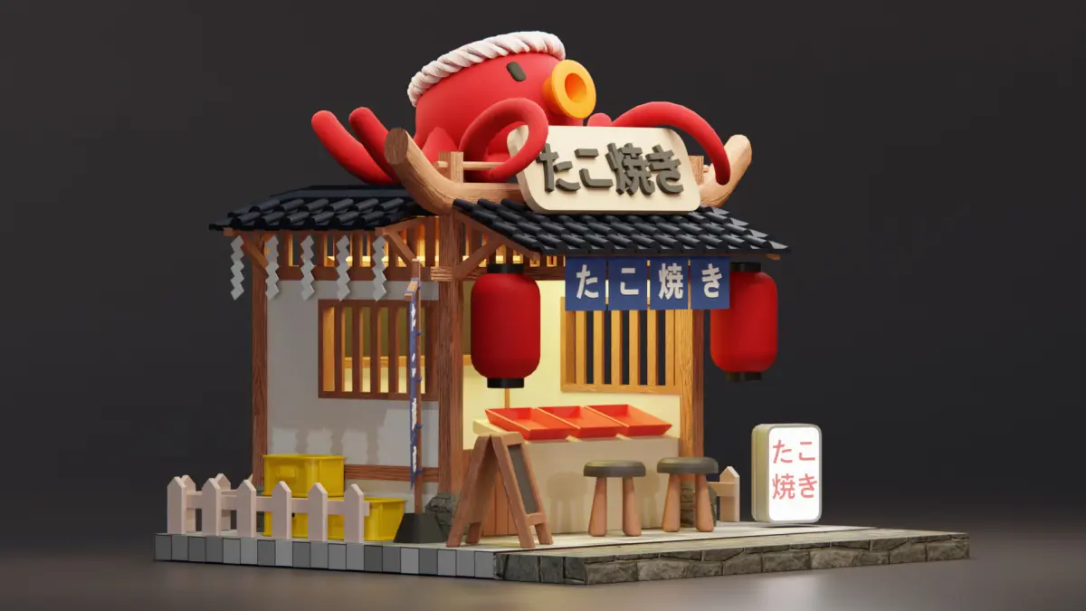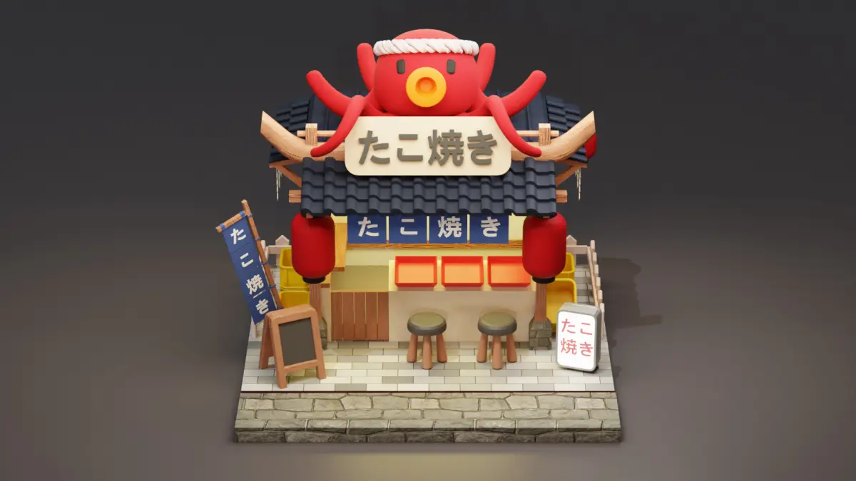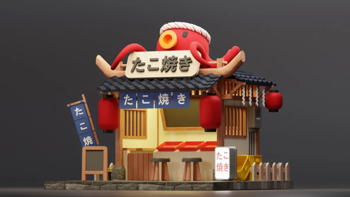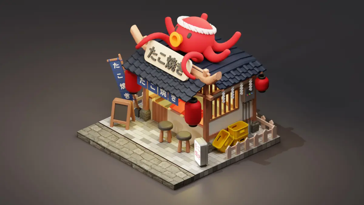 Japanese Takoyaki Stall - Cartoon Game Isometric
