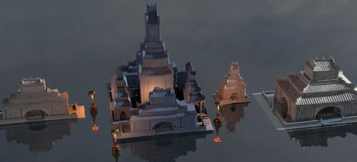 Japanese temple haunted Collection 3D !!!!comes with 4 temple structures pieces and a dragon lamp !