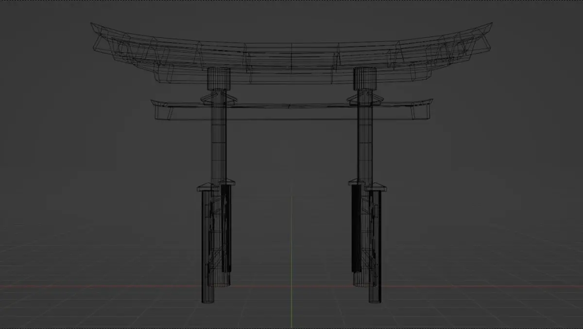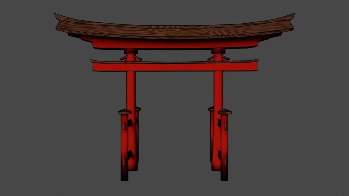 Japanese gates torii, freestyle active, 1558 verts, 2784 edges, 1282 faces, 2940 tris. Cycles render.