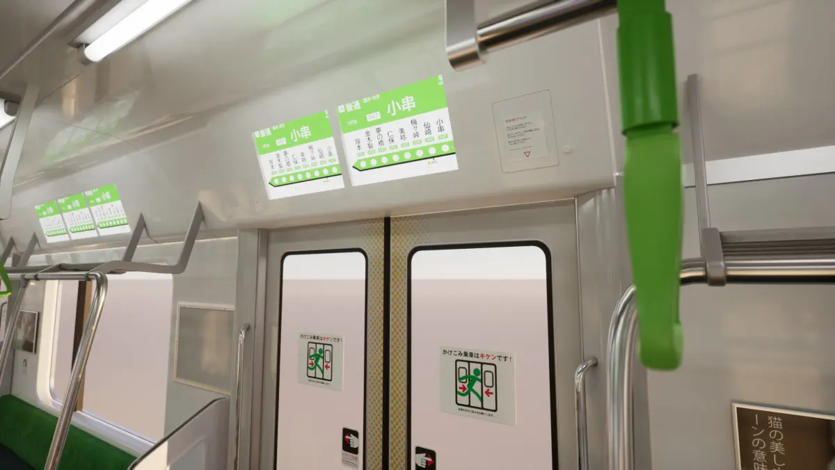 This is acinematic quality Unreal Engine environment of a Japanese Train Interior.