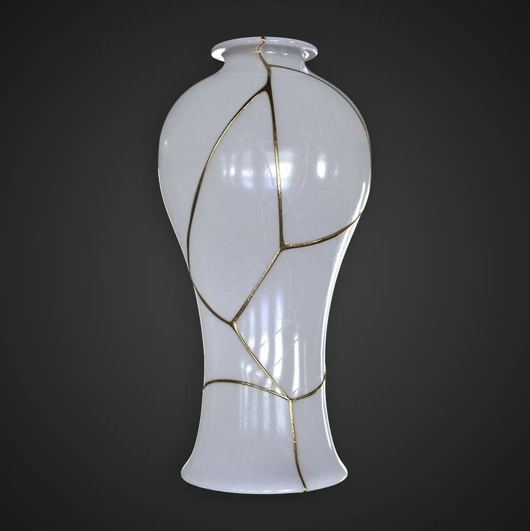What was once broken is fixed with gold. Broken object that was fixed has a history.