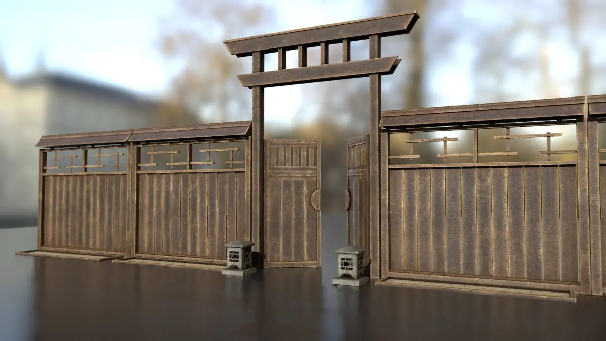 This item is composed by a wooden gate, a wooden fence, a small stone lantern and a sand container. Pieces can be used to compose a fence for a japanese / asian environment.Low poly, PBR textures, 4096x4096, roughness/metalness workflow. Game ready