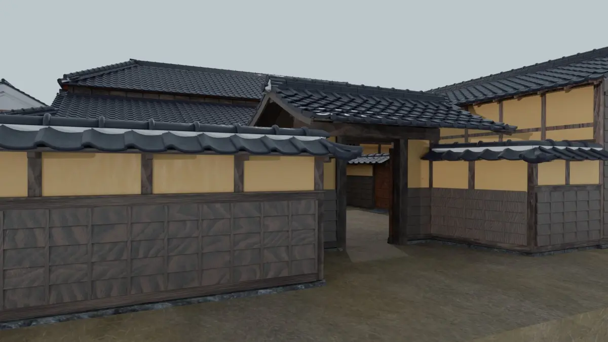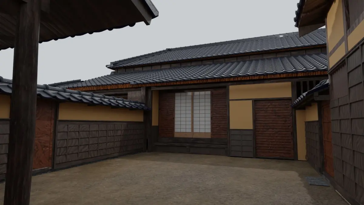 The house was built in the Edo era (last Shogun-era in Japan) and the model includes the house, as well as the stables, storehouse and mud walls.Please use the house as a backdrop as a typical Japanese dwelling.