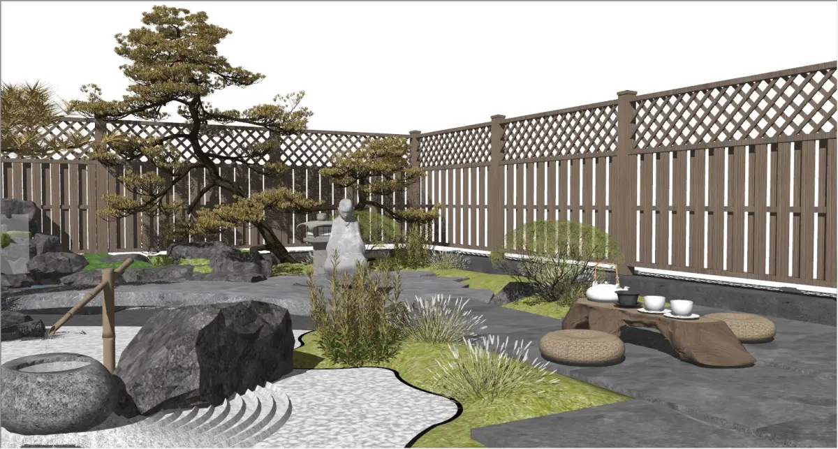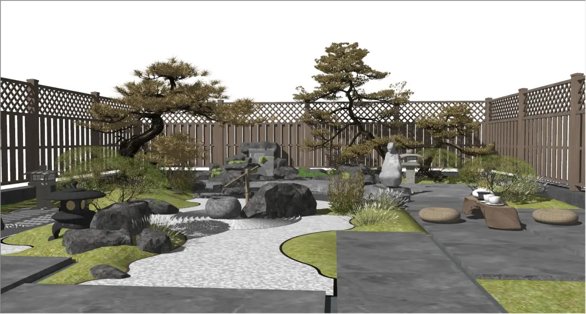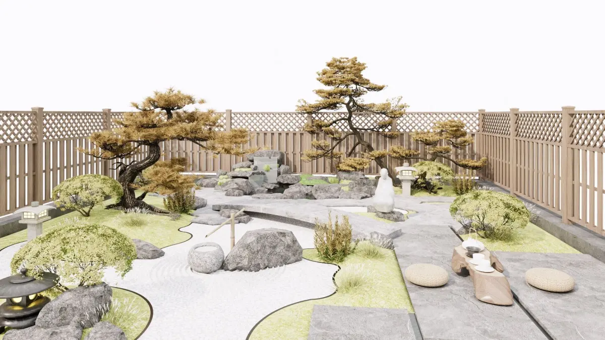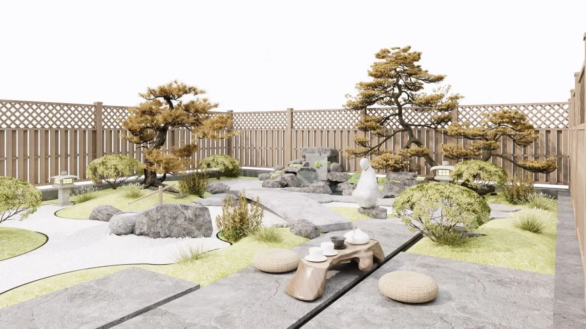 Product/Service Introduction:This carefully - crafted Japanese Zen - style courtyard takes pine trees as the main body, and is matched with stone lanterns, rocks and winding paths to create a quiet and distant space. There is a simple tea - tasting area where you can enjoy the charm of tea. From plant configuration to the layout of landscape ornaments, it fully shows the tranquility and elegance of a Japanese - style courtyard, bringing you an immersive Zen experience.Applicable Scenarios:Private residence courtyard renovation, Japanese - style homestay landscape creation, outdoor supporting for Zen teahouses, cultural club courtyard design, high - end hotel landscape arrangement