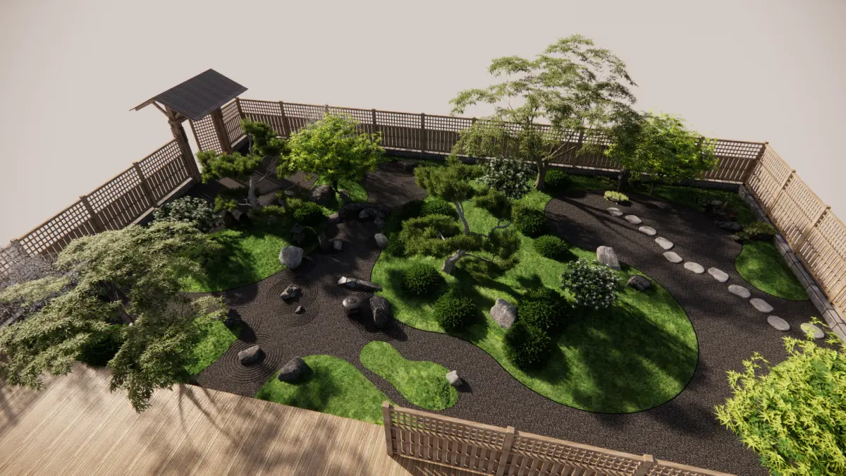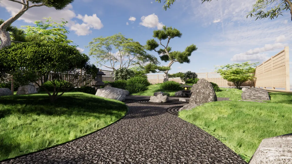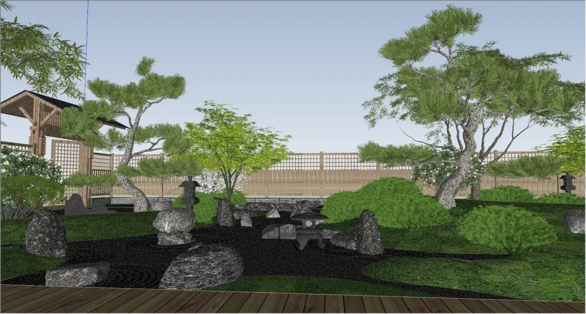 Product/Service Introduction:Presents a classic Japanese - style garden landscape, using dry landscape to outline a quiet artistic conception. Matched with shaped pine trees, natural rocks and wooden pavilions, the bamboo fence encloses to create a private atmosphere. From the landscaping layout to plant selection, it restores the Zen and natural aesthetics of Japanese gardens, creating an immersive leisure and meditation space for you.Applicable Scenarios:High - end homestay garden creation, private residence garden design, outdoor area of Japanese - style restaurants, supporting landscape for Zen - style teahouses, garden display of cultural tourism projects