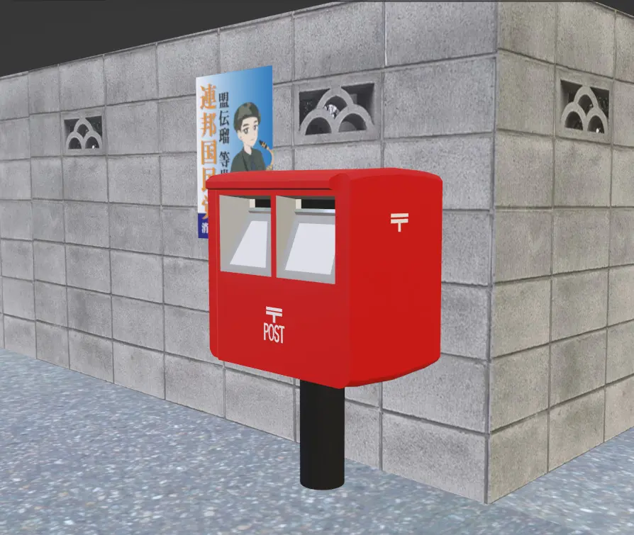 【名前】:ポスト【部類】:郵便【区分】:郵便【可動部位】:なし【分離場所】:なし【使用アプリ】:blender【メーカー】:非株式会社コマ産【提供元】:コマ産3D制作所
