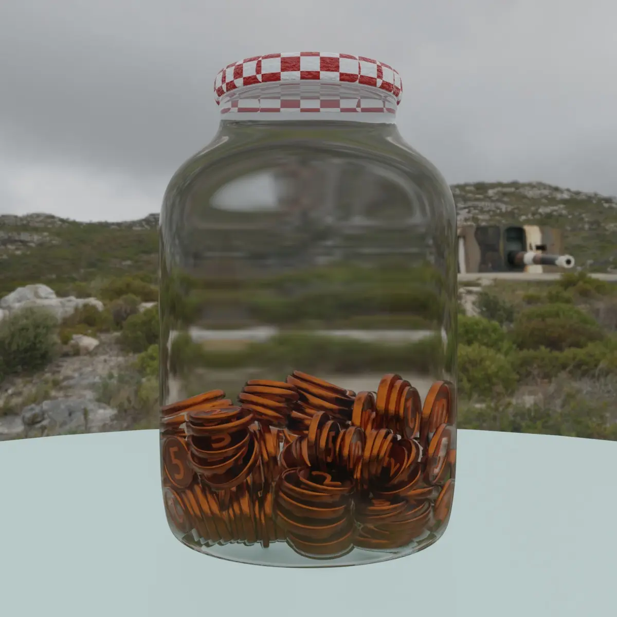 High-Quality Textures: The textures on the coins and the jar are rich in detail and realism, lending an authentic look and feel to the entire composition.