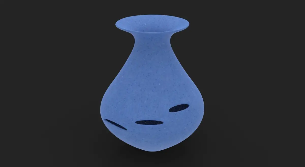 Jarron de color azul de 15cm de alto por 12cm de ancho.
