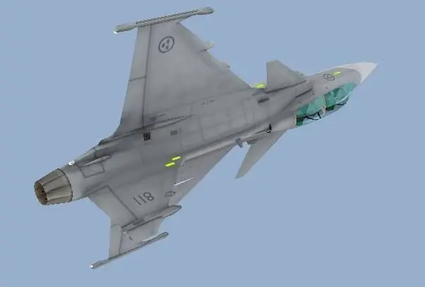 Low polygon high detailed Open flight model of the JAS 39D Gripen (Twin seated) This model contains LODs and comes with 2 different texture setups: No 811, No 816