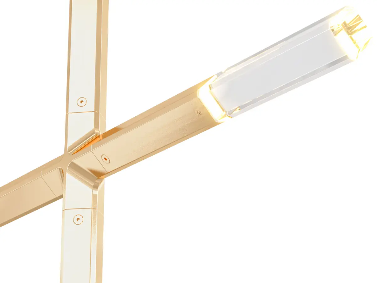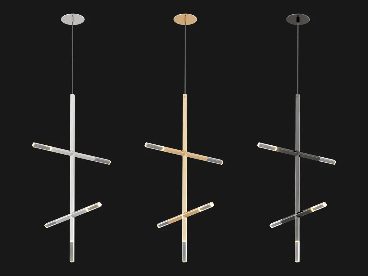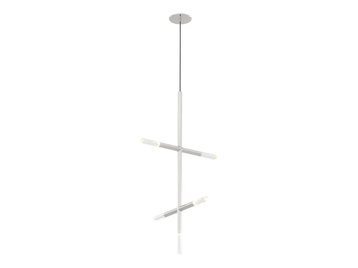 Jax translates the traditional crystal chandelier for a timeless future-past. Featuring machined aluminum and hand-polished cut crystal. A subtle chamfer crosses both materials, nodding to the archetypal cuts of chandelier prisms. Jax both honors and supplants the historic role of crystal in lighting, elevating it from an accessory to the proximal source of light.