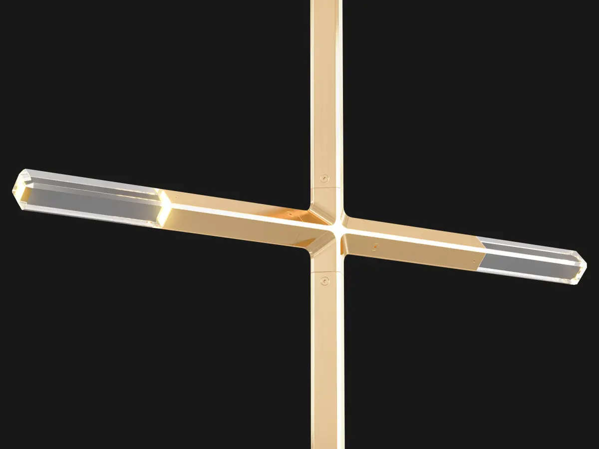Jax translates the traditional crystal chandelier for a timeless future-past. Featuring machined aluminum and hand-polished cut crystal. A subtle chamfer crosses both materials, nodding to the archetypal cuts of chandelier prisms. Jax both honors and supplants the historic role of crystal in lighting, elevating it from an accessory to the proximal source of light.