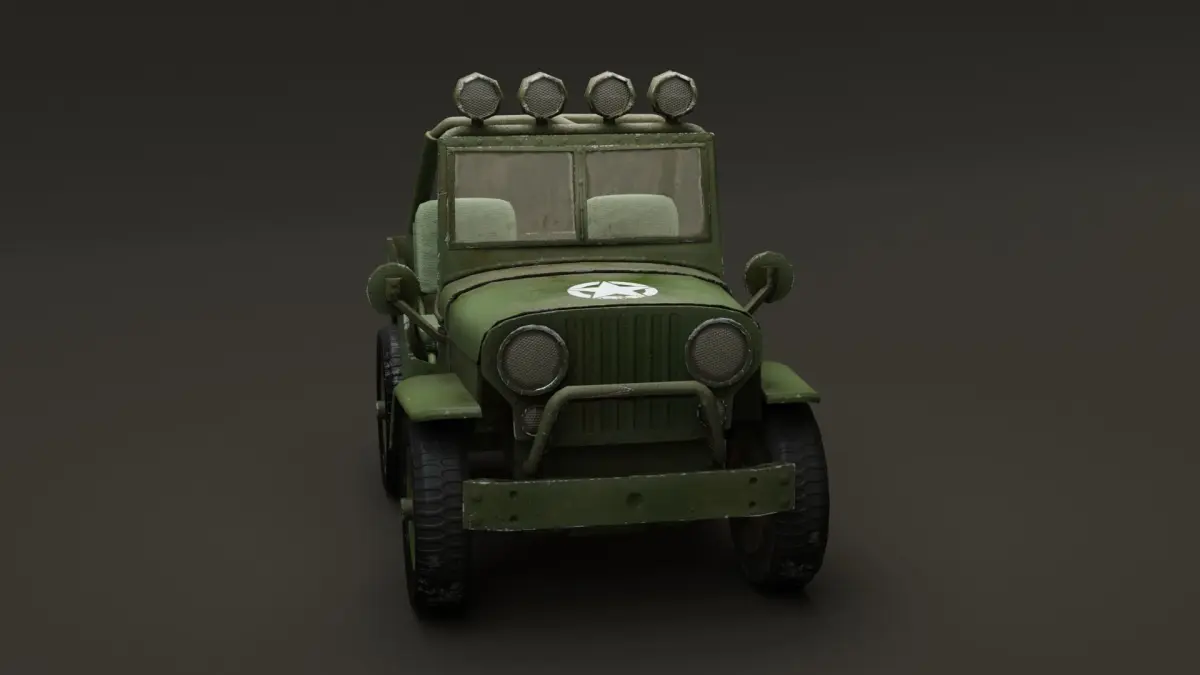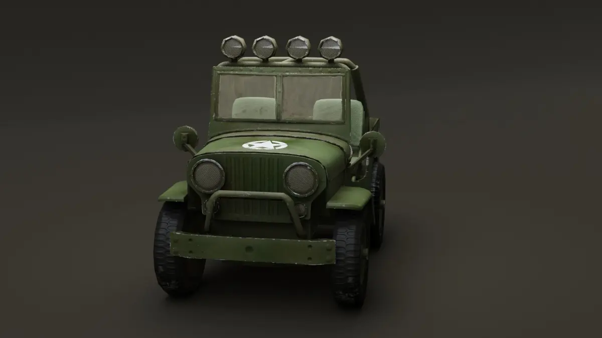 Cartoon jeep Low PolyBriefing: green vintage military texture detailed low poly Jeep, cartoonish style. Technical Information: