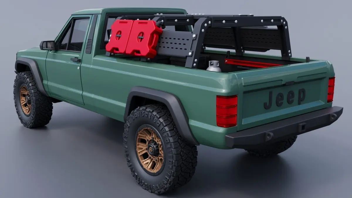 The model includes •Cab •Cab without hood •Cab divided into 2 parts •Long bed •Short bed •Bed divided into 6 parts •Hood •Grille •Interior •Chassis •Offroad part •Wheels •Tires •Windows and glass for headlights and taillights