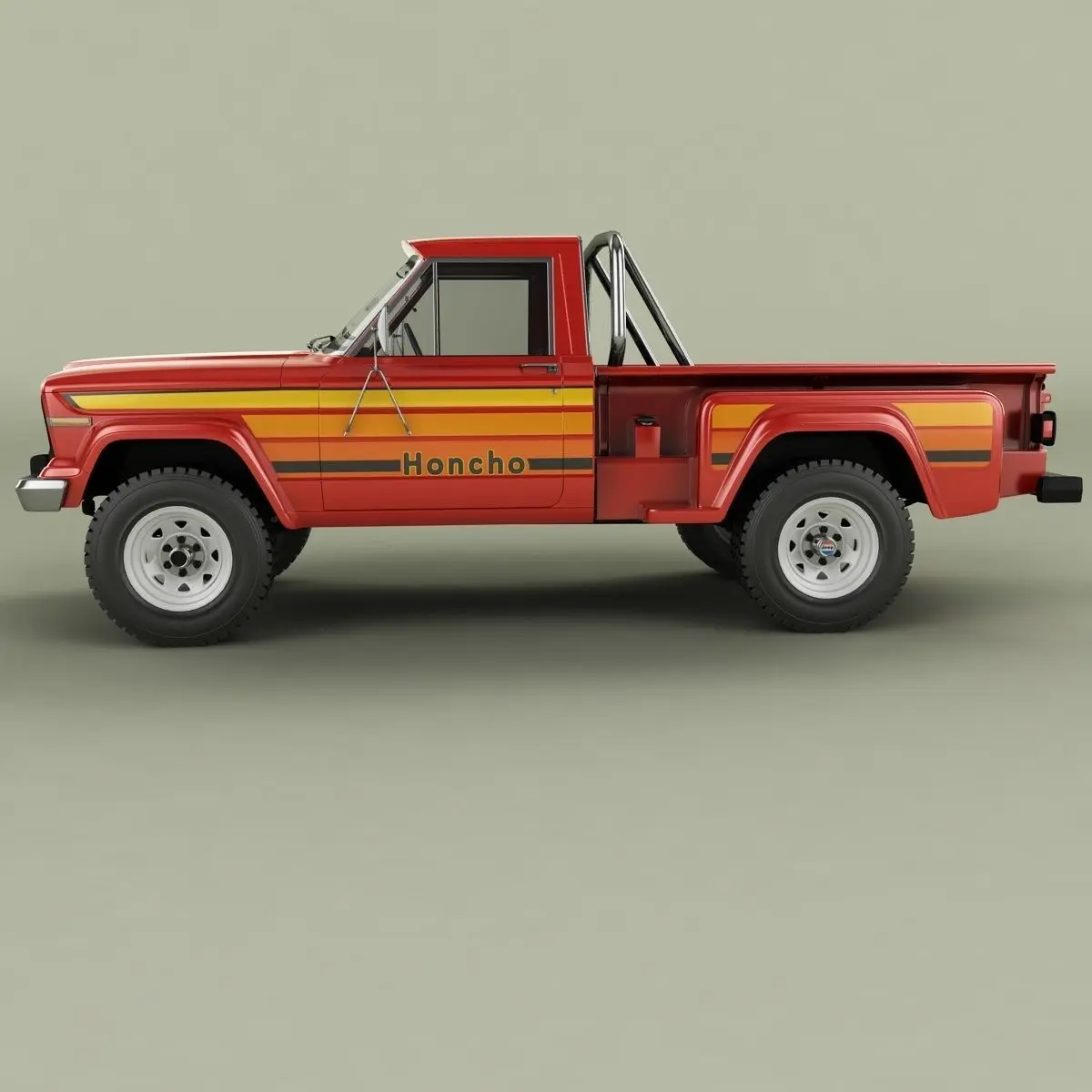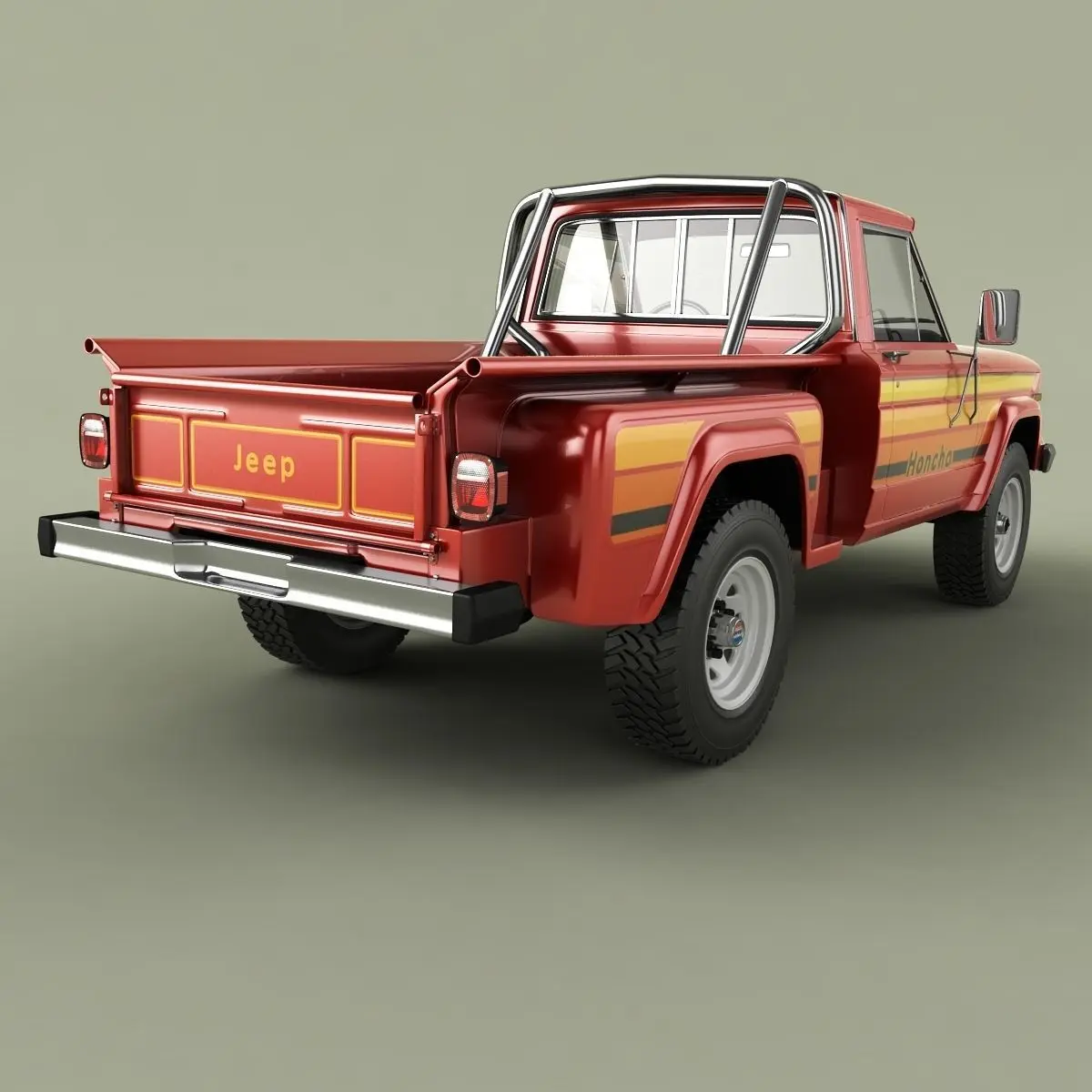 High detailed, correctly scaled model of 1981 Jeep J10 Sportside Pickup. Originally created with 3ds Max 8. Rendered with V-Ray , files with standard materials are included. Unit system is set to metric units. Model is built to real world scale. Geometry is Editable Poly (quads/tris only). TurboSmooth is use separately to objects (64 of 129 named objects) with iterations 2 (1070621 polys, 606747 vert.). Each file was checked before upload. Materials and textures are included (5 textures - jpg 1024X1024).