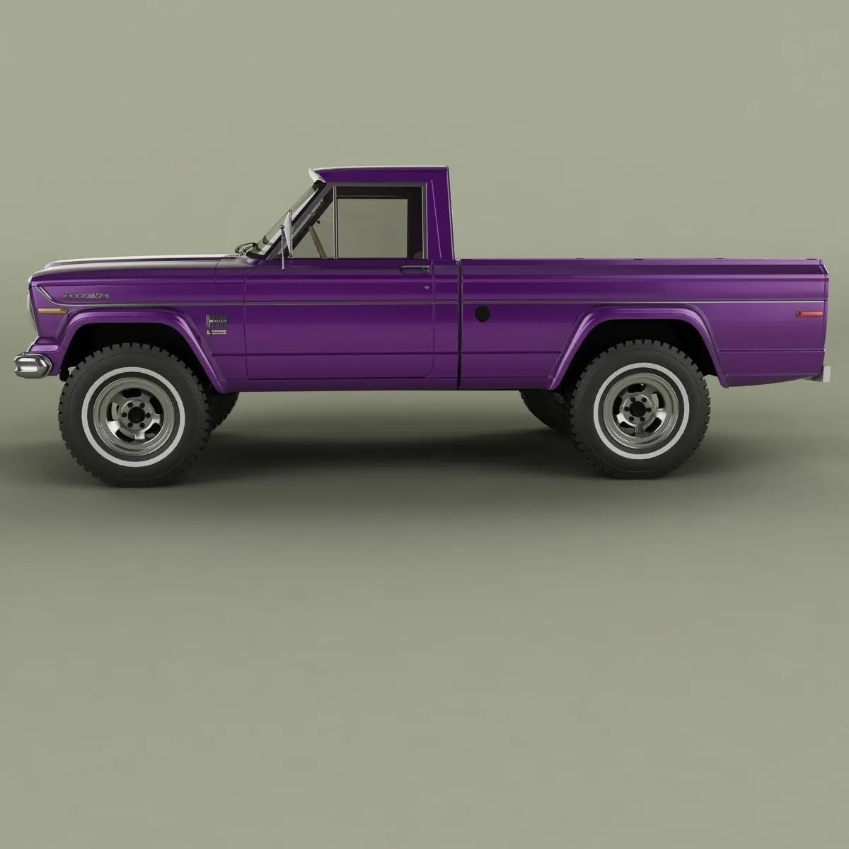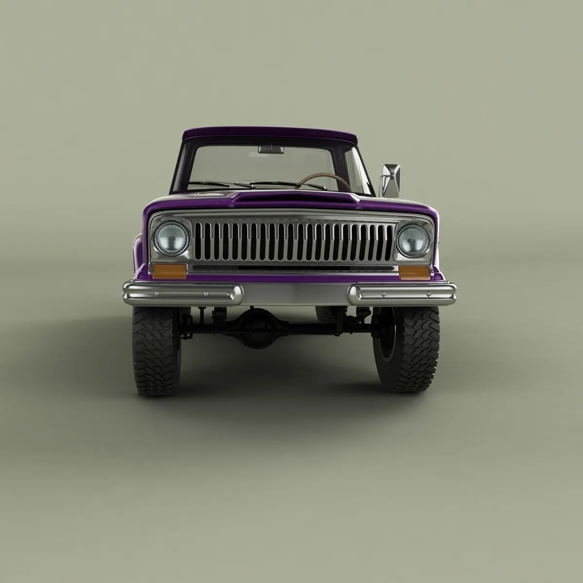 High detailed, correctly scaled model of 1972 Jeep J2000 J10 Pickup. Originally created with 3ds Max 8. Rendered with V-Ray , files with standard materials are included. Unit system is set to metric units. Model is built to real world scale. Geometry is Editable Poly (quads/tris only). TurboSmooth is use separately to objects (48 of 118 named objects) with iterations 2 (884889 polys, 502438 vert.). Each file was checked before upload. Materials and textures are included (3 textures - jpg 1024X1024).