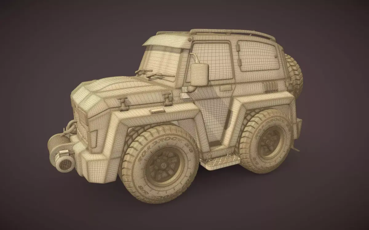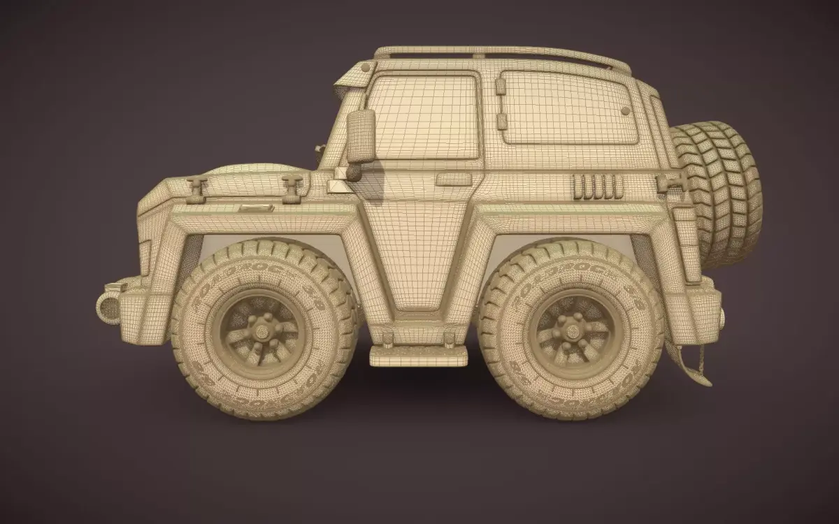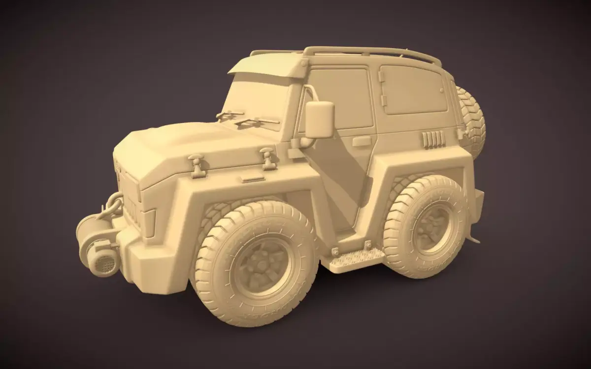 Model 3d off a Jeep-Q8 in choro-Q style caricatural.Modeling 3dsmaxsuitable for 3D resin printing
