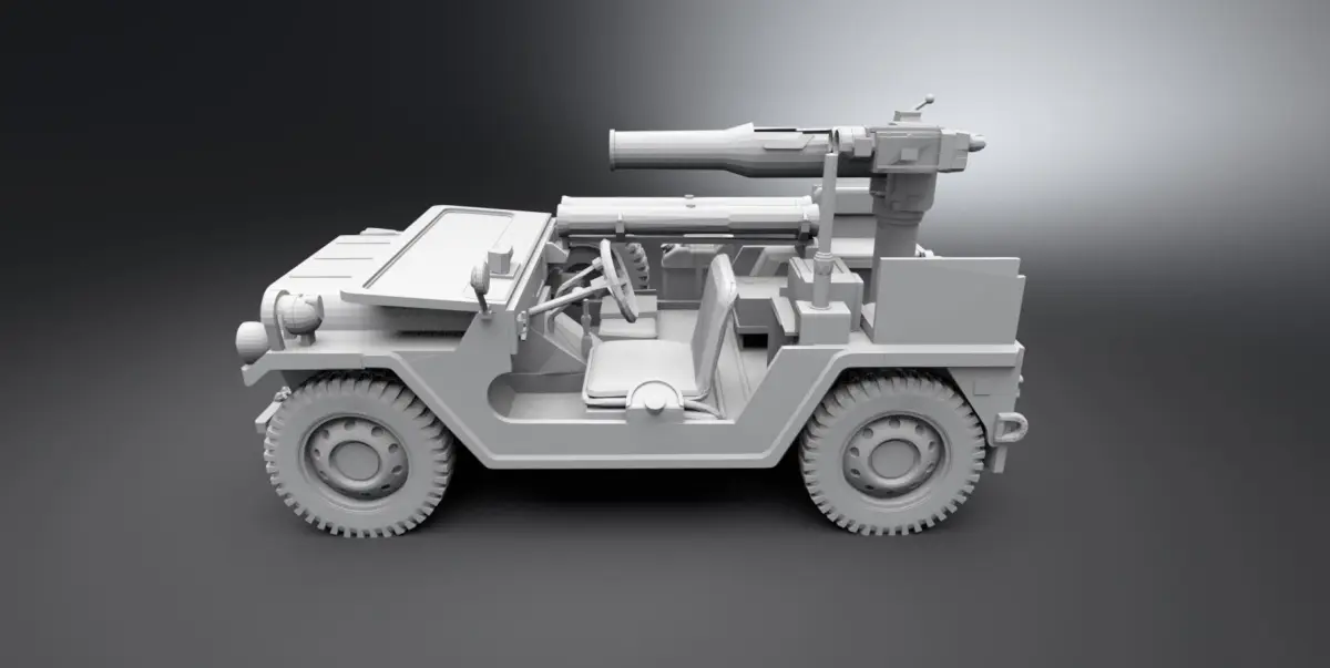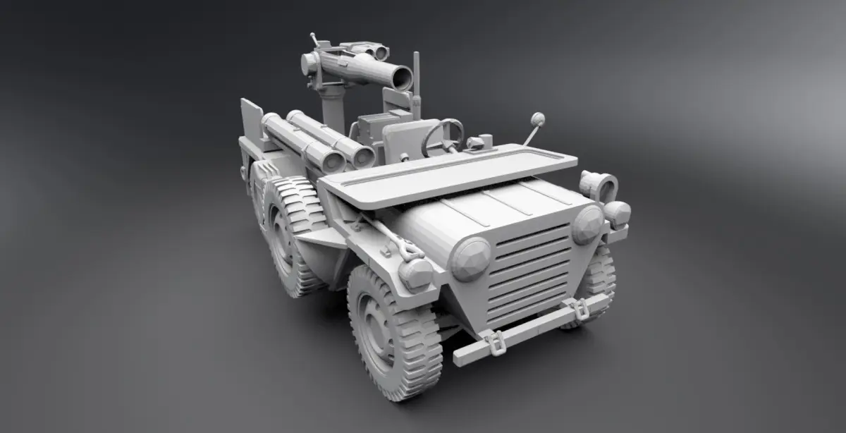 Detailed model of Jeep willys MB anti tank.
