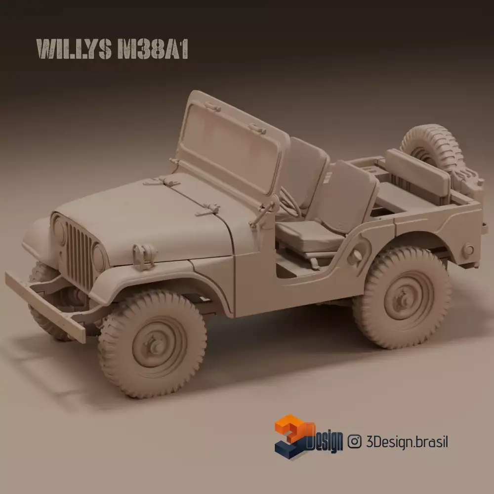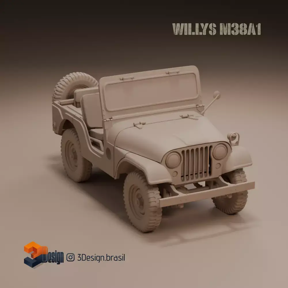 Inspired by the iconic Jeep Willys M38A1 Military, this highly detailed 3D model was designed for 3D printing in HO 1:87 scale, but it also scales perfectly to 1:64 or larger without losing quality. Featuring 18 separate parts for easy printing and perfect fit assembly, it includes articulated wheel axles, allowing the wheels to spin realistically.
