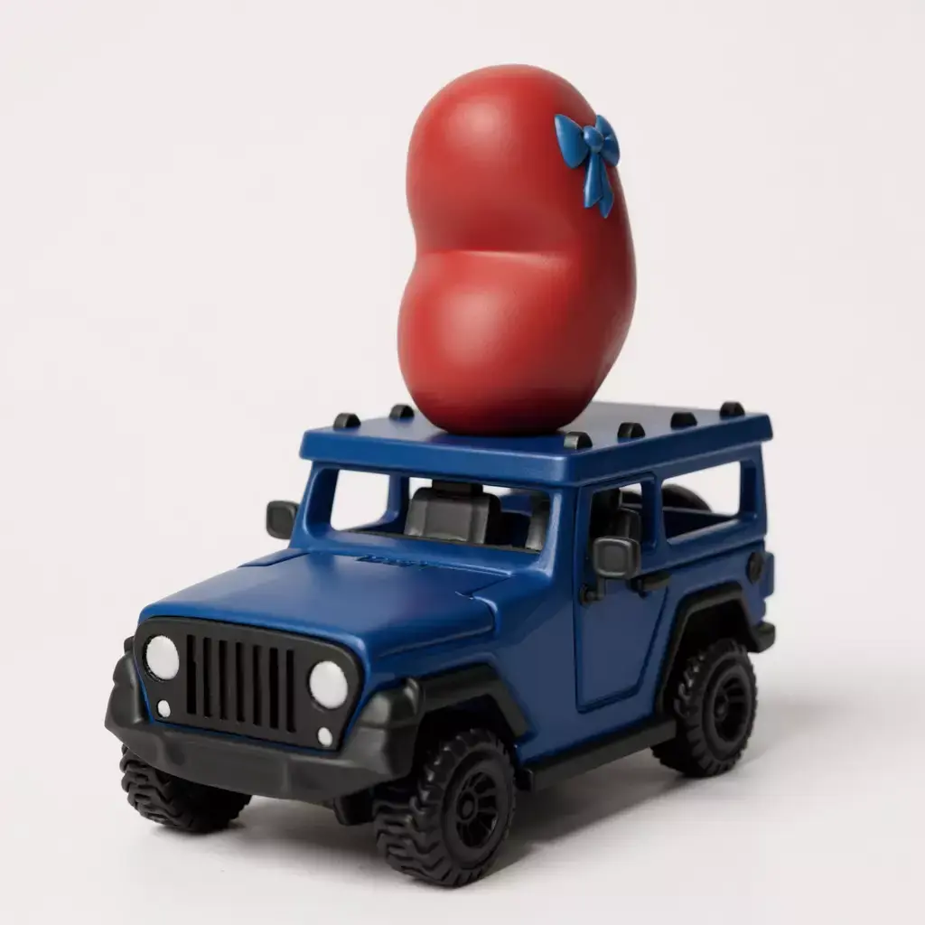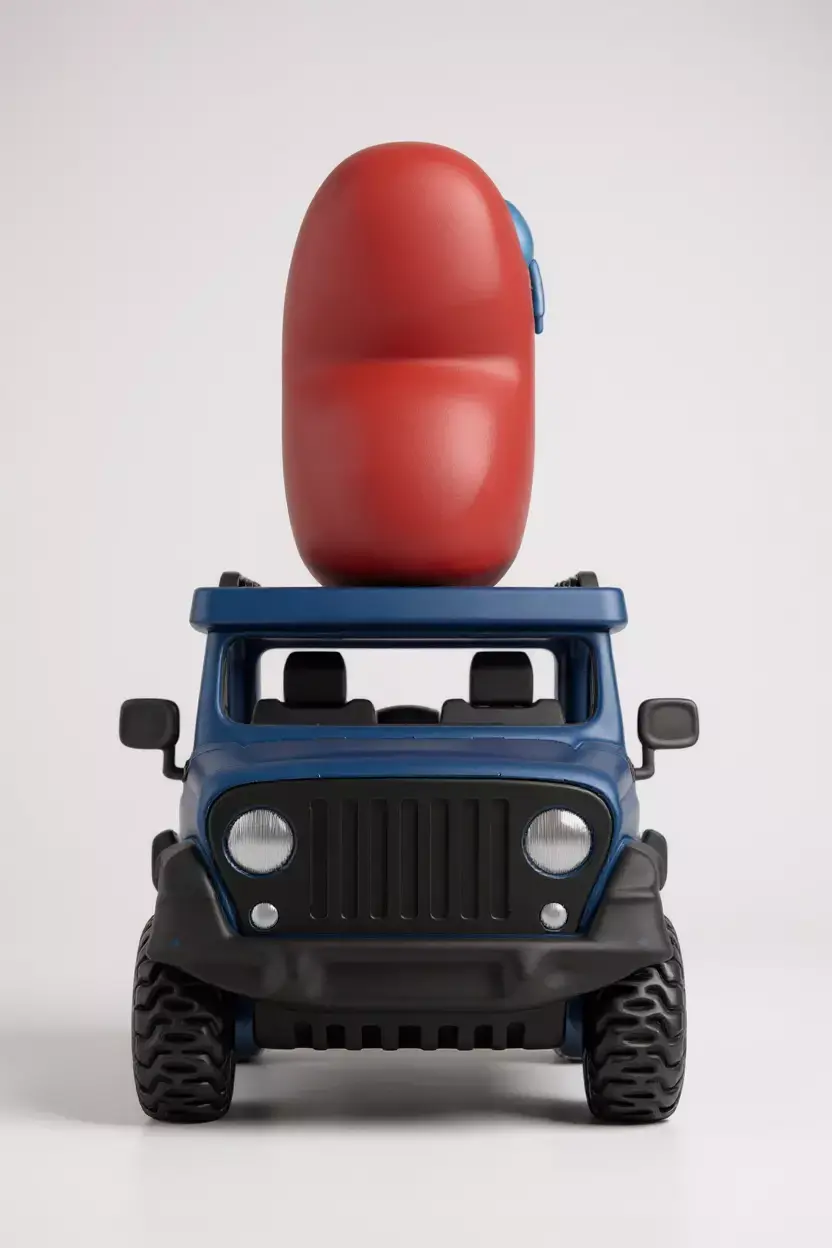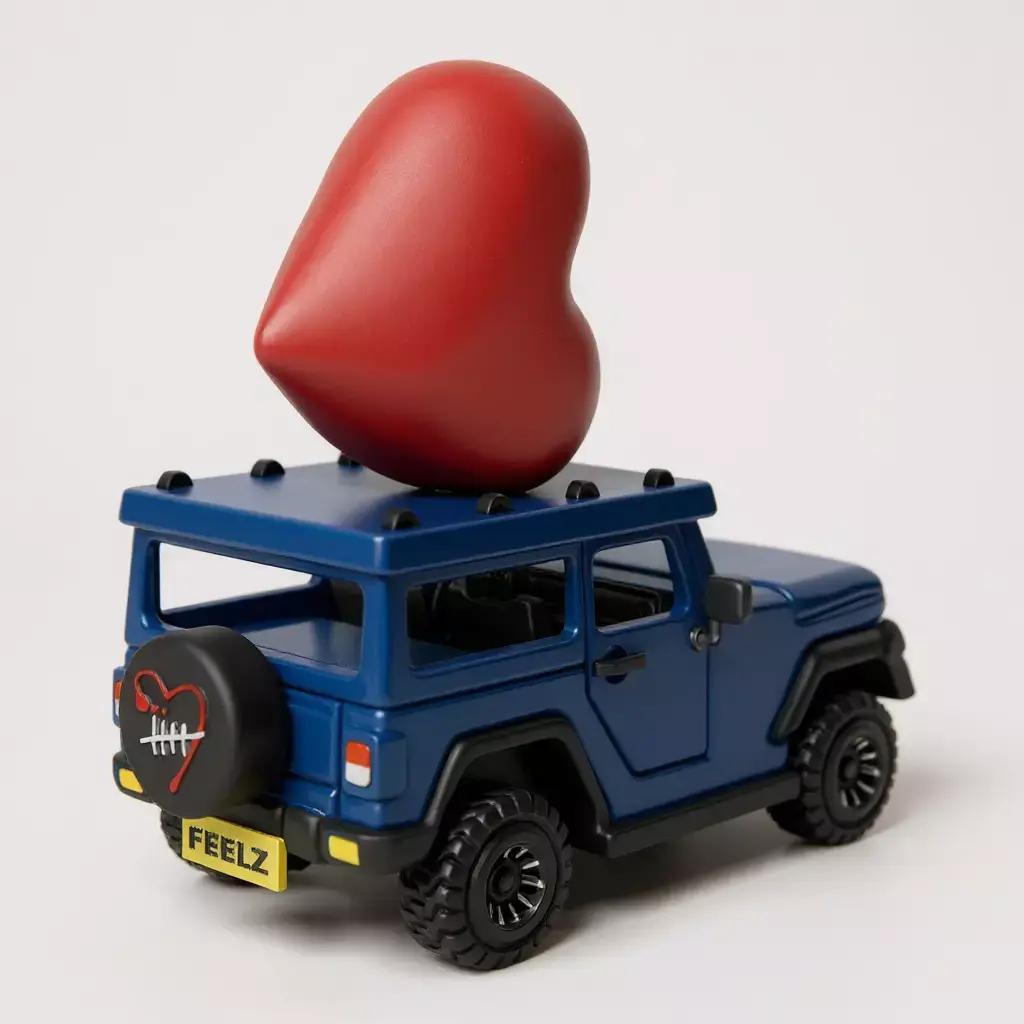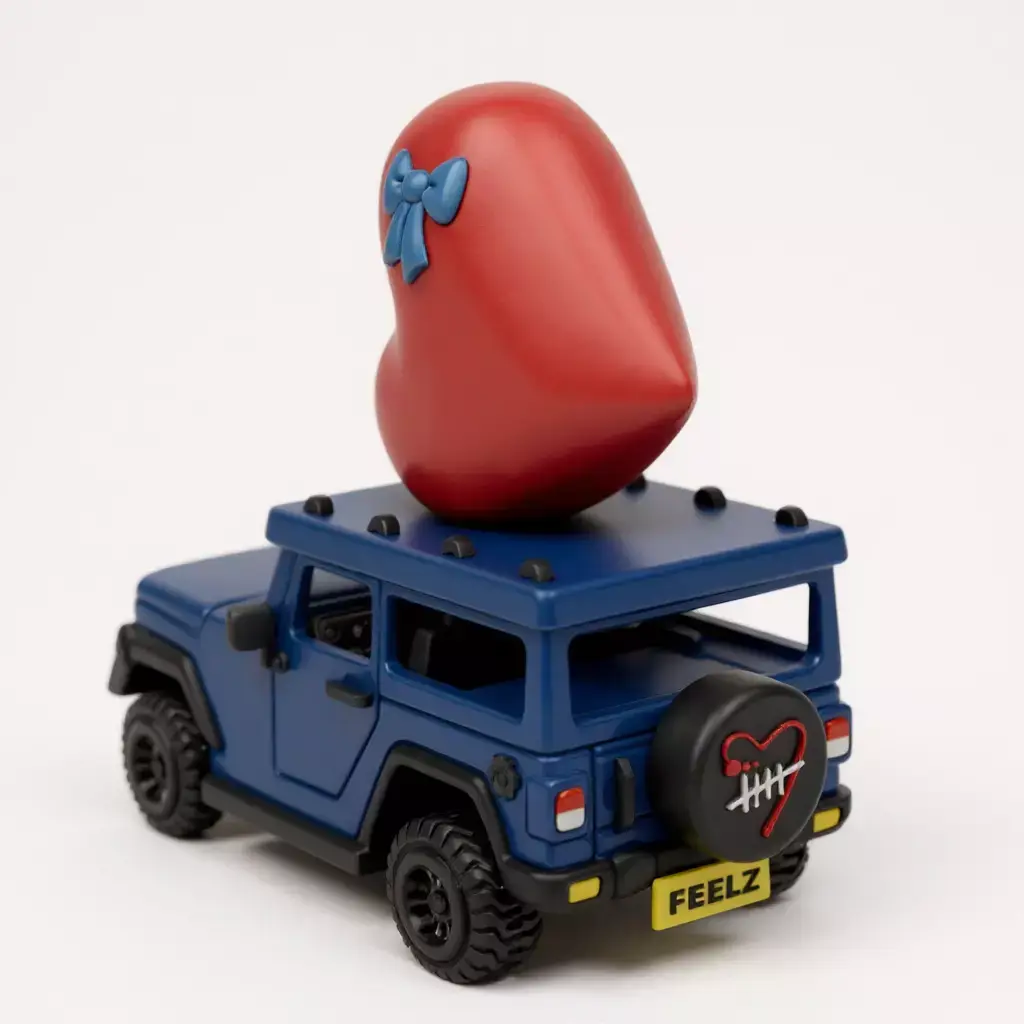 3D model inspired by the Jeep Wrangler with a large heart on the roof.
