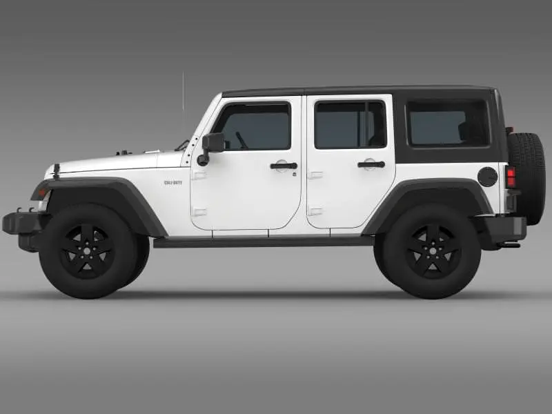 Let me represent you high poly 3d model of Jeep Wrangler Call of Duty Black Ops (The Jeep Wrangler is a compact four-wheel drive off-road and sport utility vehicle (SUV), manufactured by American automaker Chrysler, under its Jeep marque – and currently hard in its third generation.) with high detail.