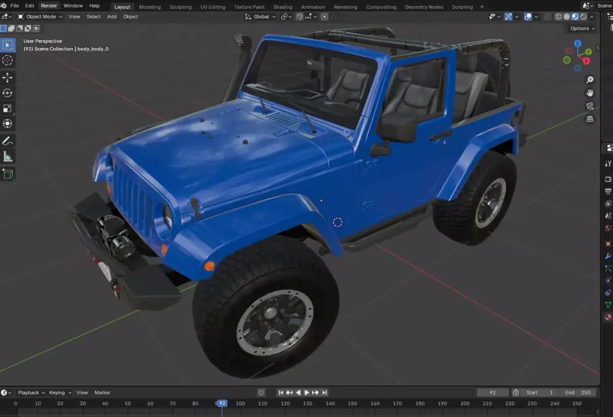 This high-quality 3D asset is optimized for real-time performance in modern game engines like Unreal Engine 5 or Unity. The model features a clean mesh topology and PBR textures, making it ideal for high-octane racing or open-world exploration titles. With separate components for the wheels, winch, and steering, it is fully prepared for advanced vehicle physics and suspension rigging. The open-top design and detailed interior allow for seamless transitions between third-person driving and cinematic cutscenes. Its rugged aesthetic, complete with a snorkel and stubby bumper, provides the perfect look for a hero vehicle in extreme off-road environments.