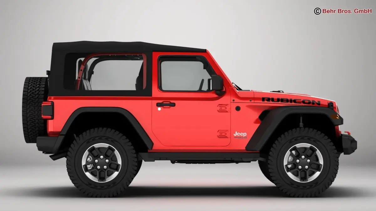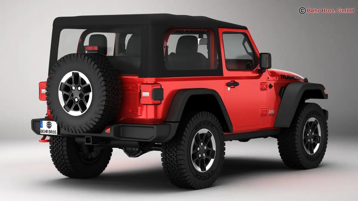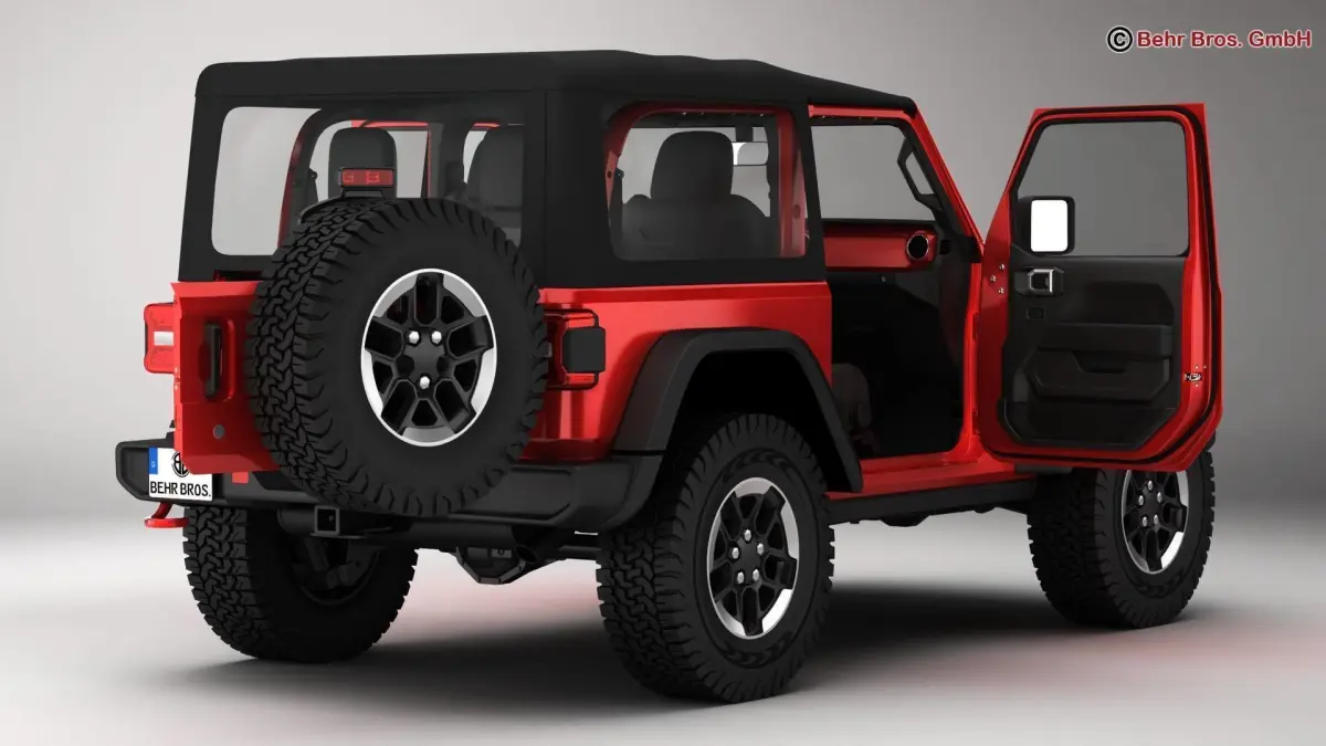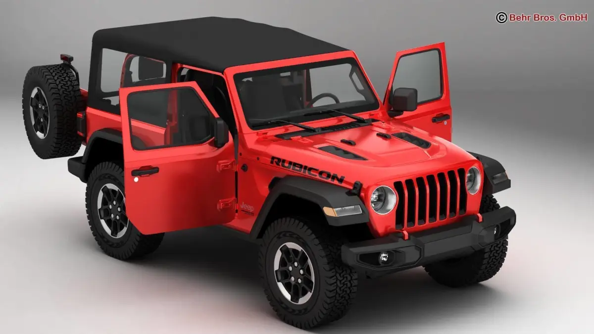 Accurate very high definition Jeep Wrangler Rubicon 2 Door 2018 model with highly detailed interior. Headlights and tail lights are modelled, doors and trunk can be opened. The soft top can be removed. The model includes modeled tires.