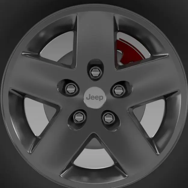 High detailed 3d model of the Jeep Wrangler Rubicon wheel. Model is created in real units of measurement. Model with physically accurate materials.