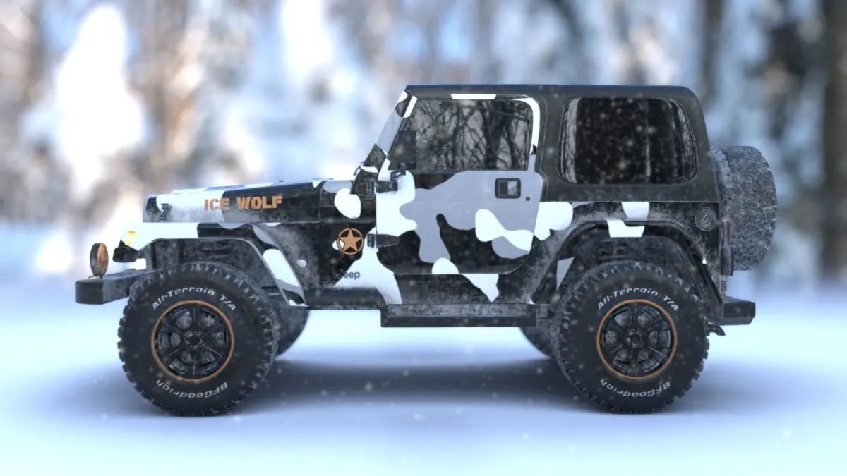 Description:This is a 1998 Jeep Wrangler but customized to look like a winter-themed Jeep Wrangler. I saw some references of someone customizing their Jeep to look similar to this design. It looked like fun so I decided to do a variation of it.