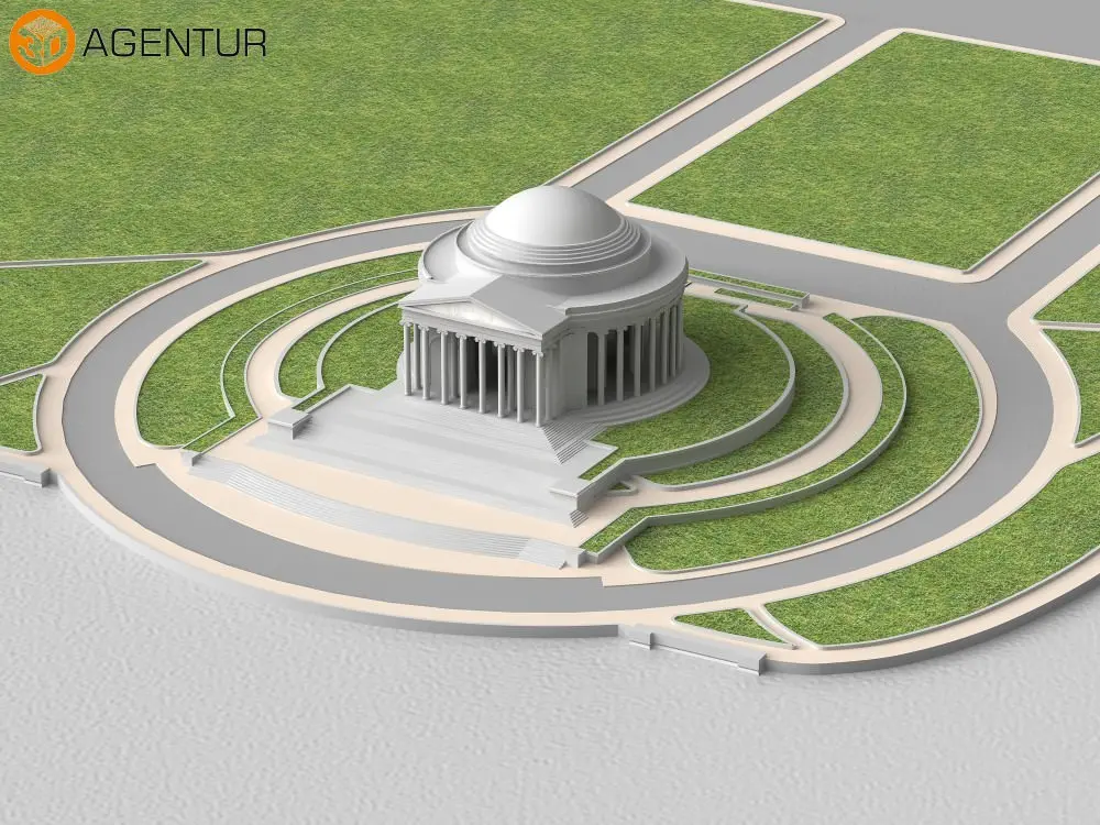 Why is the Jefferson Memorial and its 3d building model significant?It is not only a stunning piece of architecture at first glance. From its marble and granite exterior to its carefully-planned 19-foot bronze statue sculpted uniquely by Rudulph Evans, the structure is nothing short of powerful. It is located in West Potomac Park in Washington, D.C., south of the White House; the perfect location for a memorial with such rich history. Designed by John Russel Pope and constructed by John McShain, the building is now managed by the National Park Service.