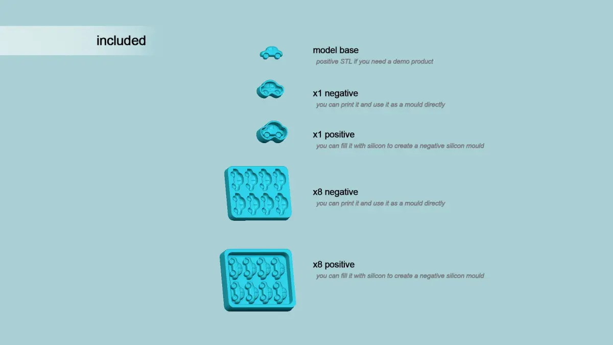 Jelly Candy Molding - Gummy Mould05 files included in this pack, as shown in second image:Base Model, x1 Negative, x1 Positive, x8 Negative, x8 Positive.