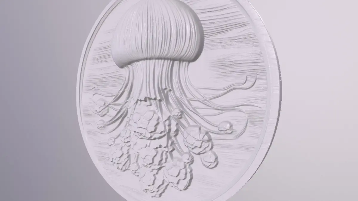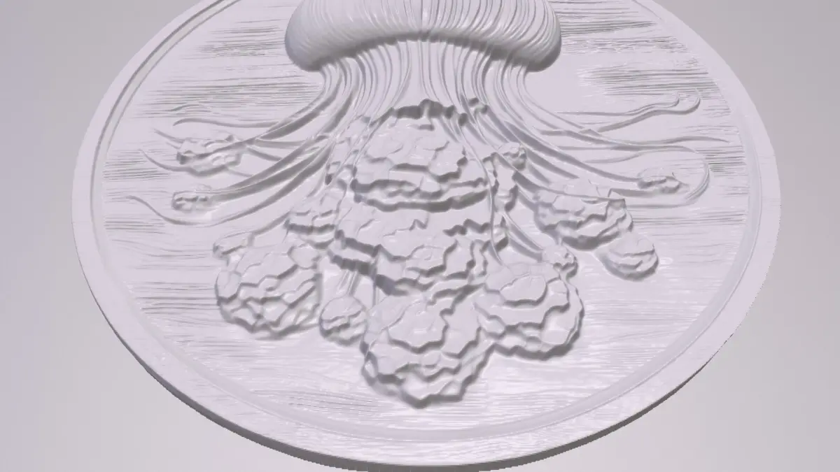 Great bas-relief 3d model of a Jellyfish. 3d model for cnc machine, 3d printer and laser engravement. You can scale the model to any size you need.