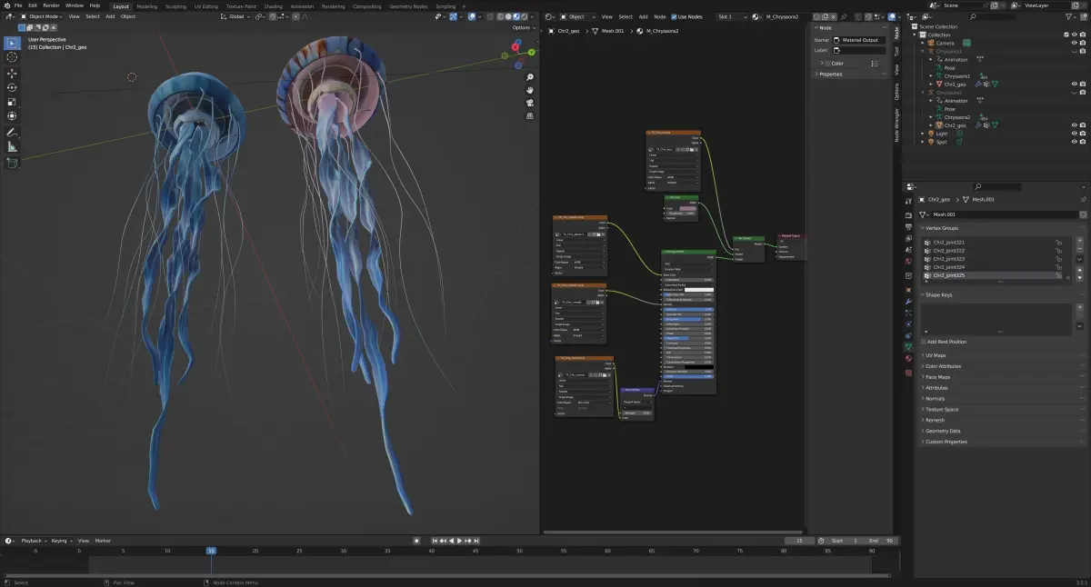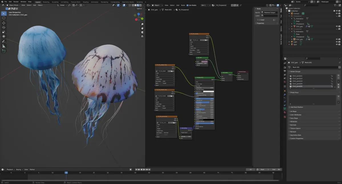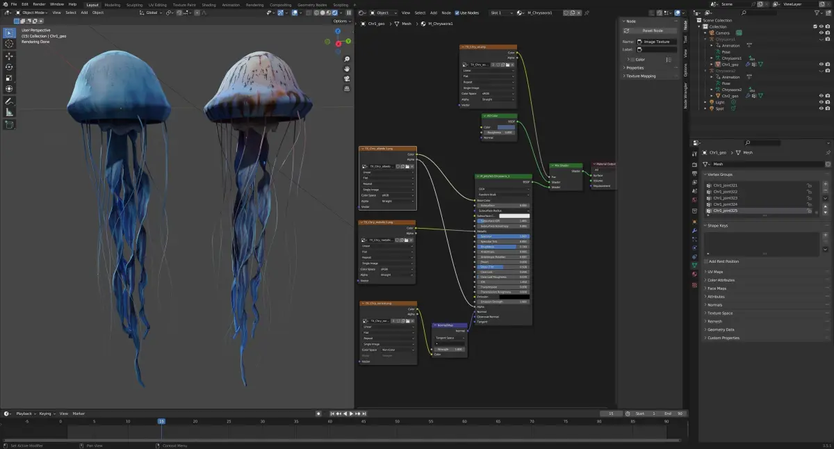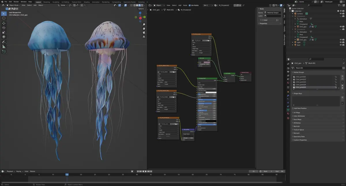 The Jellyfish Chrysaora has a loop animation with 2 different albedo textures. An animation loop contains 90 frames (1-90, 30fps).
