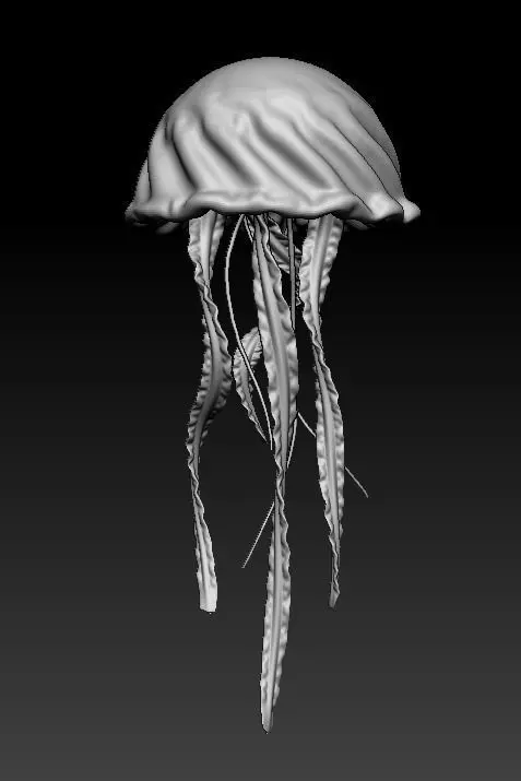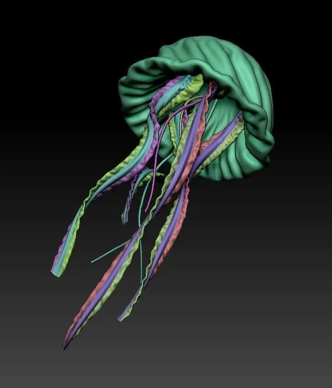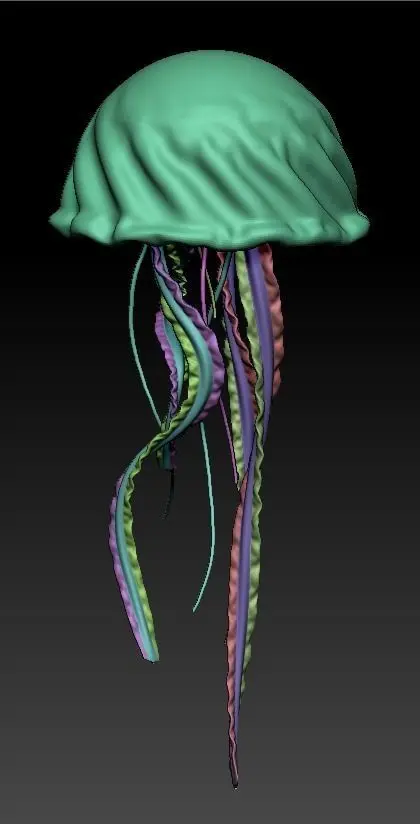 This is a Jellyfish BASE MESH. Base vertices count is 150k, presented with dynamic Subdivison enabled, smooth 2. Poly Groups have been retained within the FBX for easy reassortment of the tentacles and strands for different appearances. this model is not animation ready.