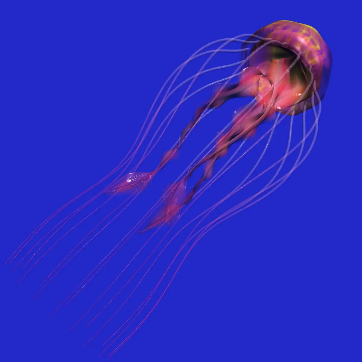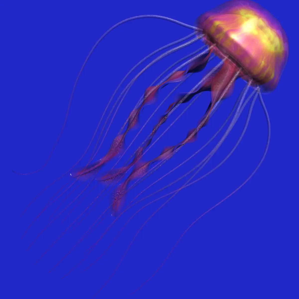 The model is fully rigged and finely skined. 246 bones moved by just 2 helper objets to simulate the natural move of the jellyfish.A single morphing target allows a perfect propulsion move of the head.-- See the video: