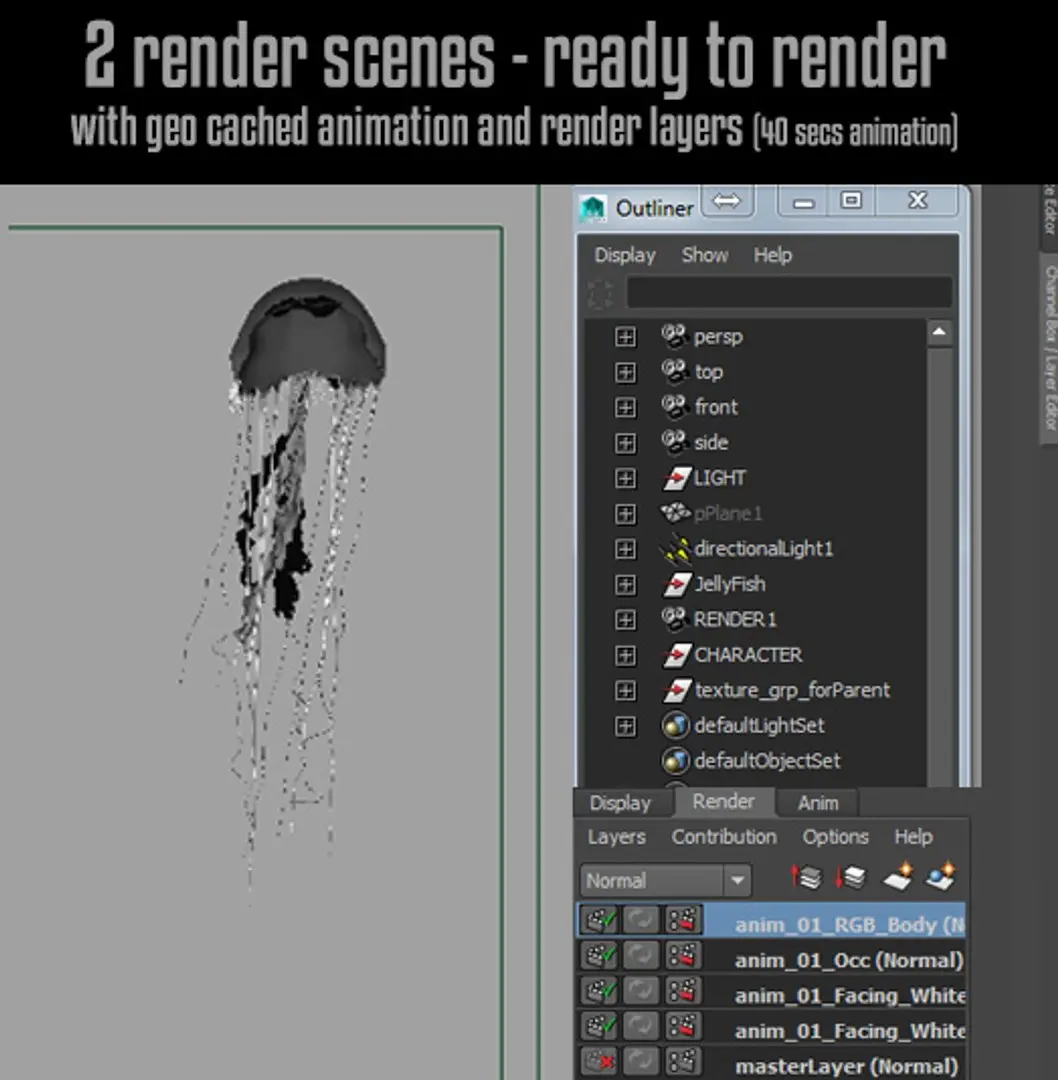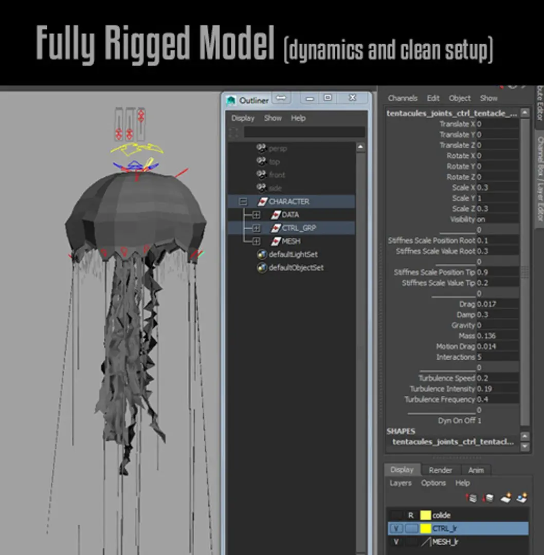 Jellyfish Rigged model for Maya 2015, ready to use.