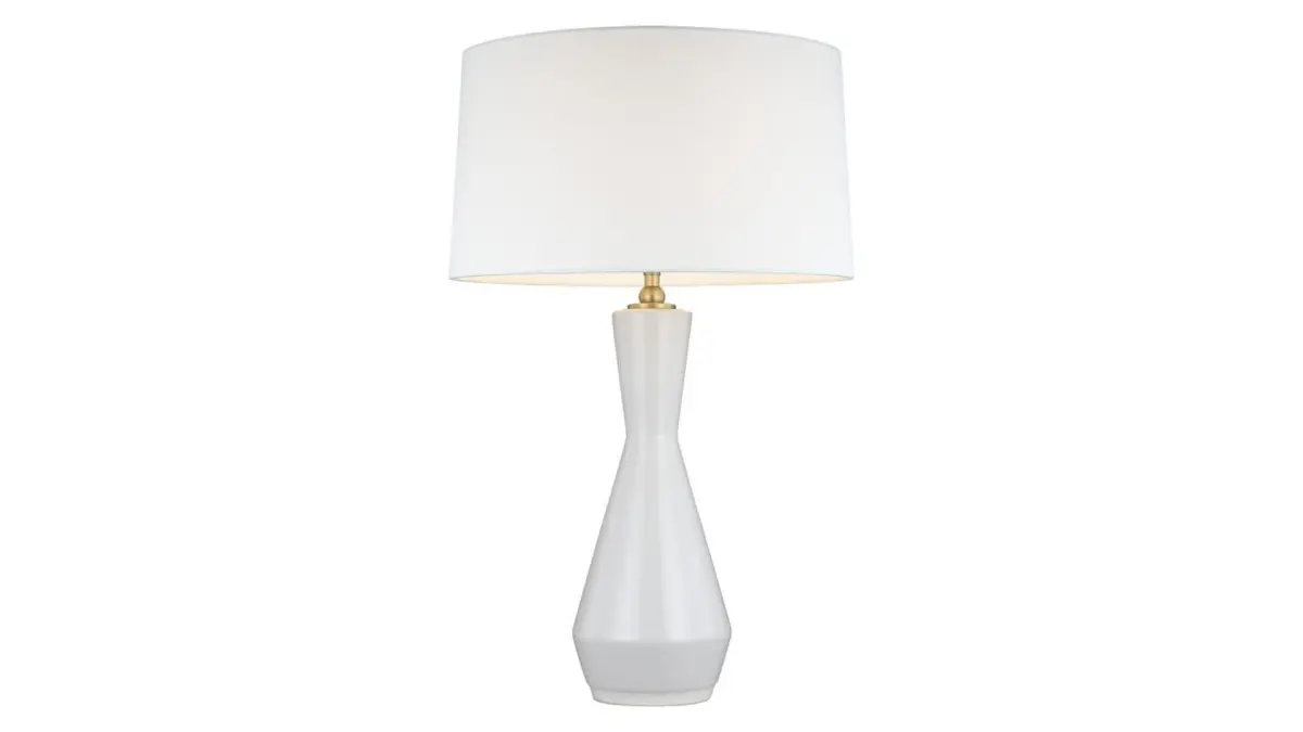 The Jens Table Lamp brings a clean decorative look to your interior space. The drum shaped White Linen shade is complemented by a ceramic body in Lucent Aqua or Soft Ivory. On/Off switch is located on the lamp socket. cETL listed.