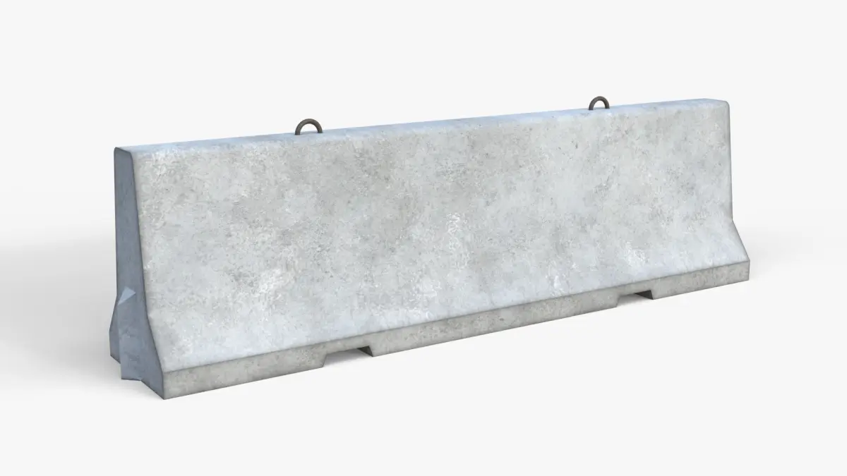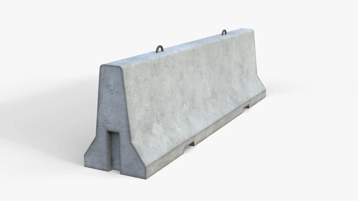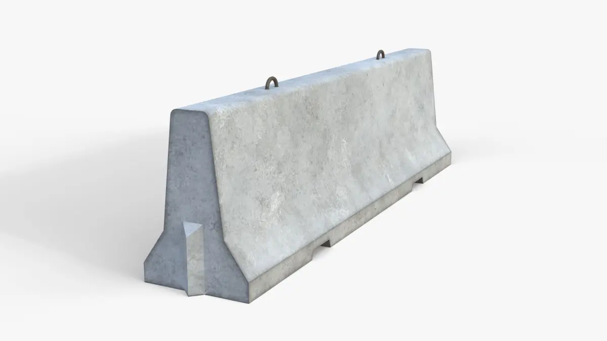 Realistic high quality low-poly 3D model of a Jersey Concrete Barrier.