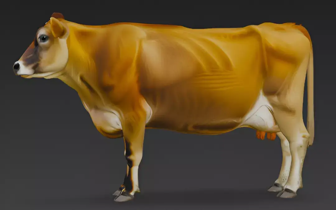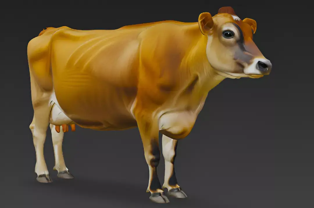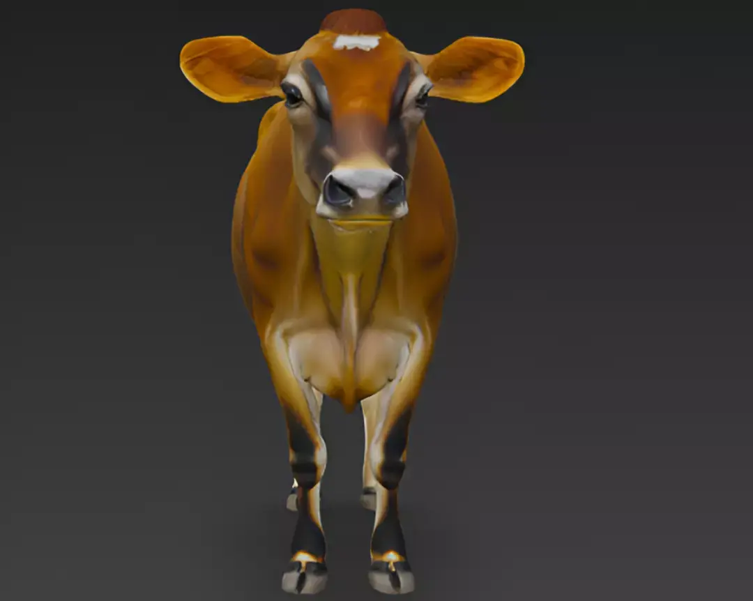 This is a highly detailed 3D model of a Jersey cow, perfect for game developers, animators, and 3D artists. The model features a realistic light brown coat with subtle shading, detailed udder and hooves, and lifelike facial features. Ideal for farm, rural, or educational scenes, this model is optimized for smooth rendering and offers customization potential. Suitable for animations, games, or high-quality renders.