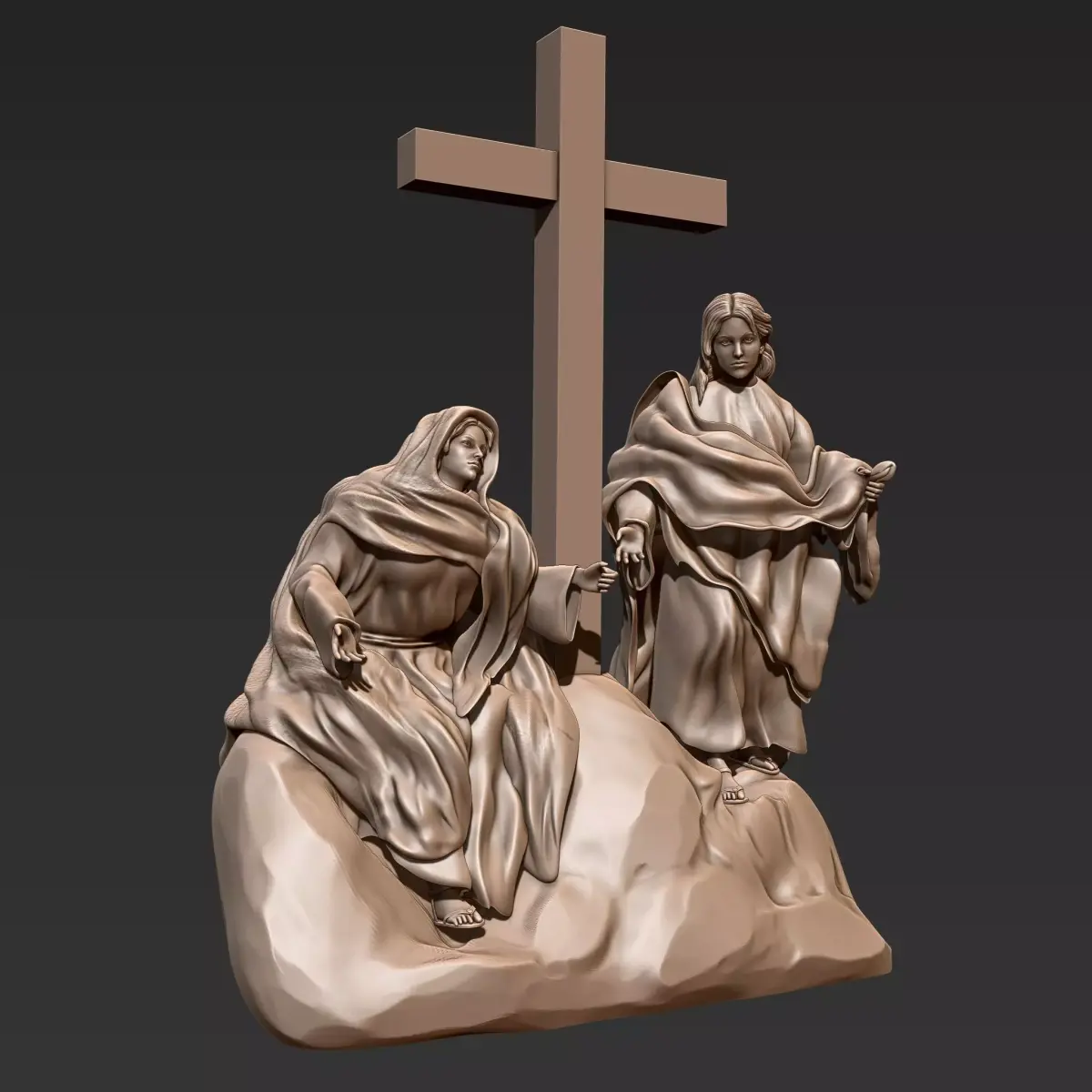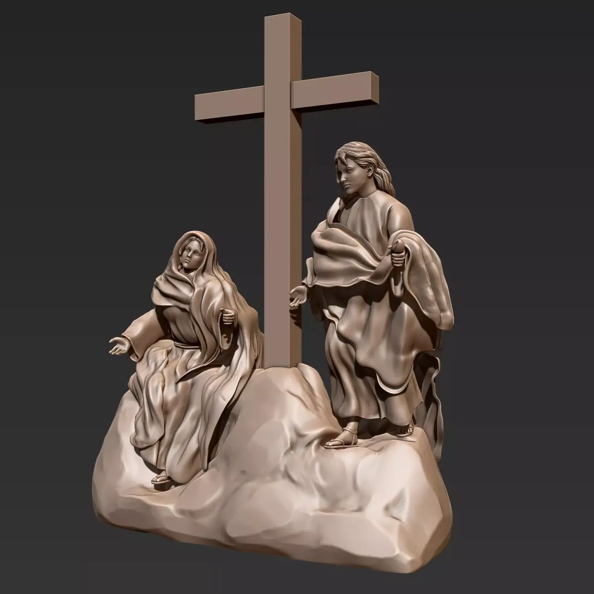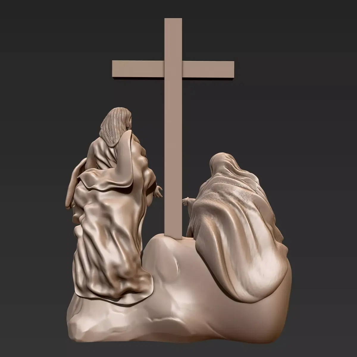 A detailed Christian religious sculpture featuring Jesus and Mother Mary at the Cross, designed specifically for high-quality 3D printing.Perfect for home altar, church display, religious gifts, or decorative collectibles. The model includes clean details and smooth surfaces for easy printing and finishing.