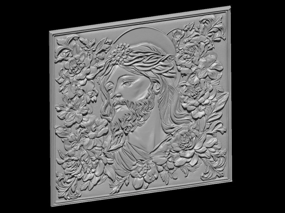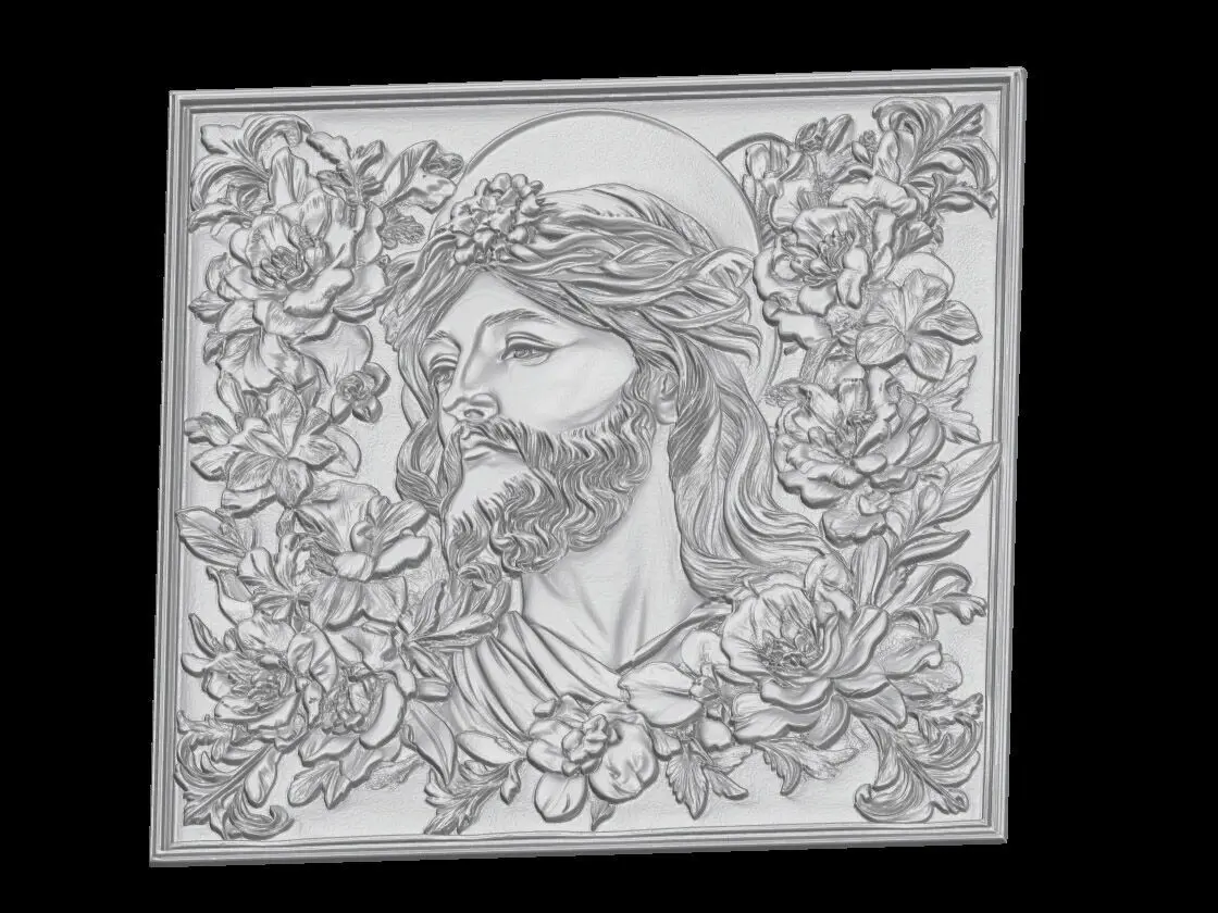 Add a touch of spiritual beauty and artistic elegance to your collection with this stunning 3D relief of Jesus Christ surrounded by intricately sculpted flowers and ornamental elements. This inspirational artwork evokes peace, love, and divine grace, making it a perfect centerpiece for CNC engraving or 3D printing projects.