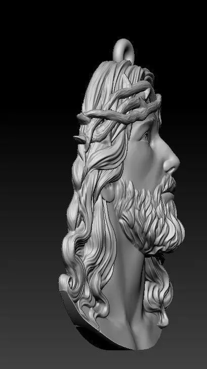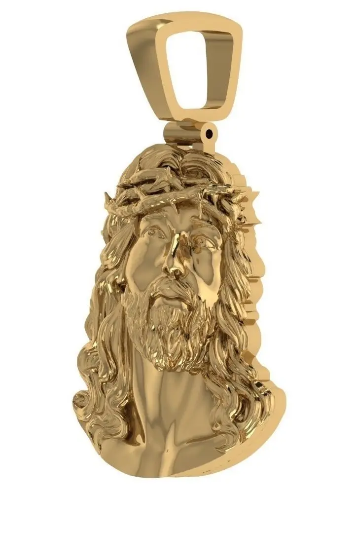 The head of Jesus is made in the form of a pendant. Files available for download: height 25mm (full suspension and light suspension) + chain loops. The model is solid and comes in two formats: .stl + .obj.