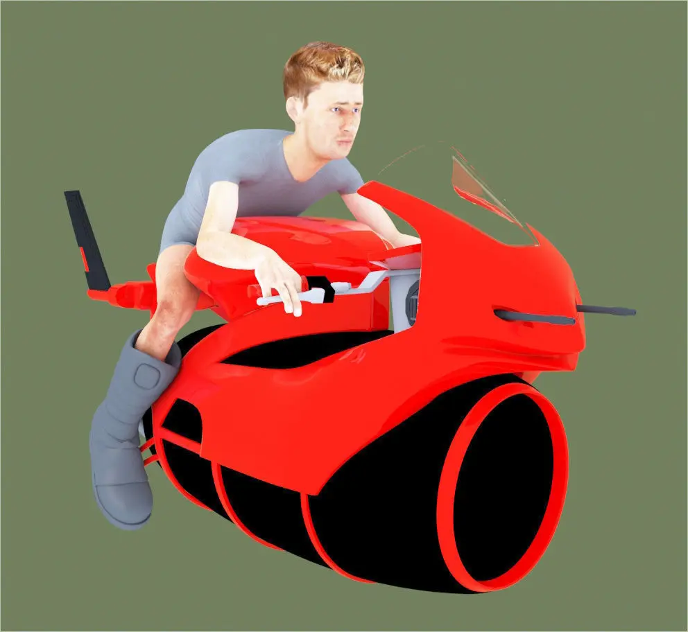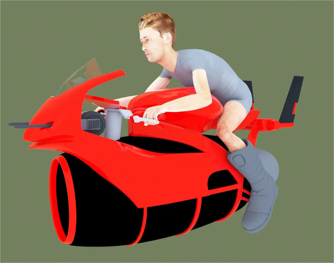 A rigged male (biped, with skin) riding a jet bike. The hand and feet biped bones are anchored in place with the hands moving with the handle bar steering. The scene was rendered with vray and the materials are applied to work with it. This was created as part of a work in progress animation sequence https://youtu.be/85nqmWQEJ7Q . The zip file contains older versions of Max 2013-2015 and an FBX file.Polys: 203,782 Tris: 203,782 Edges; 606,481Verts: 110,028 Created in 3D Studio Max 2016 with supporting texture map and mtl files.