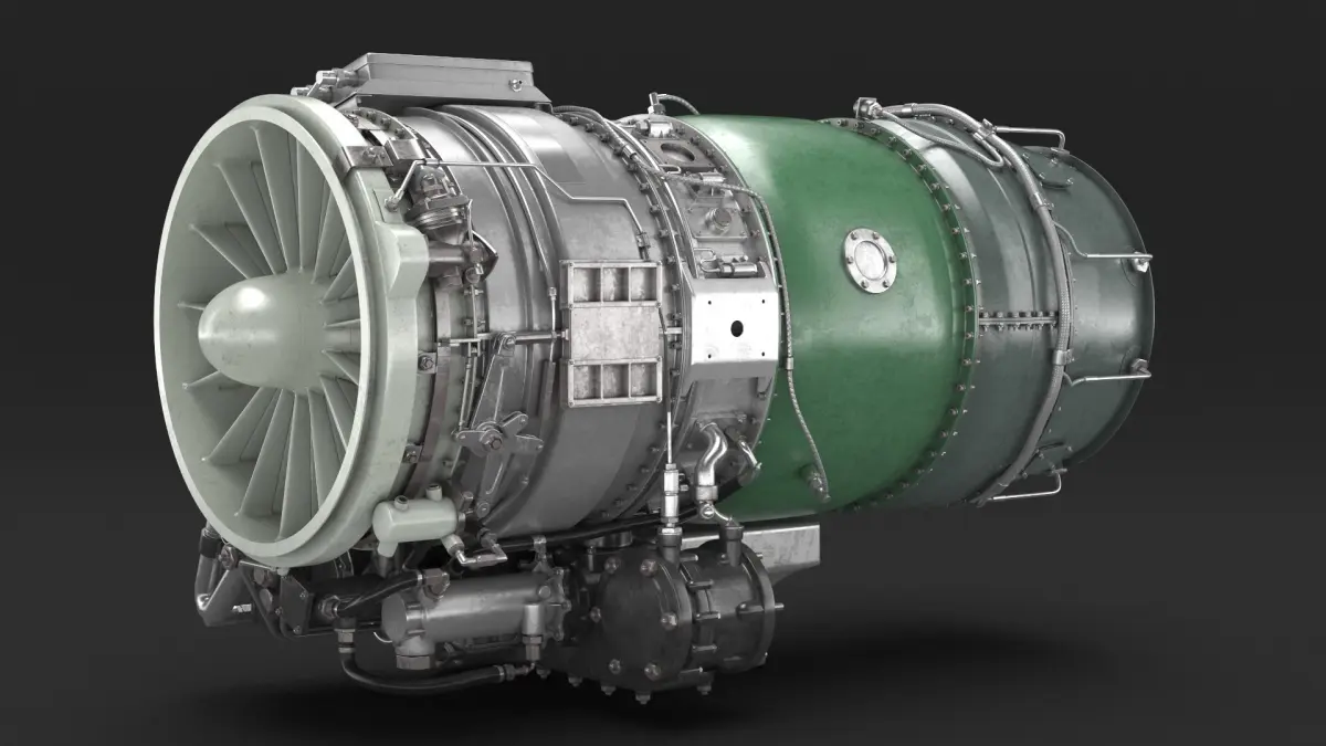 Jet Engine Turbine J85 is a three-dimensional model of a jet engine, exemplifying the intricate machinery used in modern aviation and aerospace engineering.