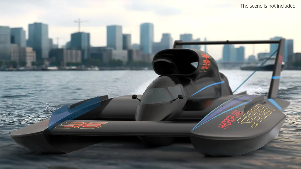 Jet Hydroplane Racing Boat Black Simplified is a 3d model of a high-performance racing hydroplane designed for competitive water racing.