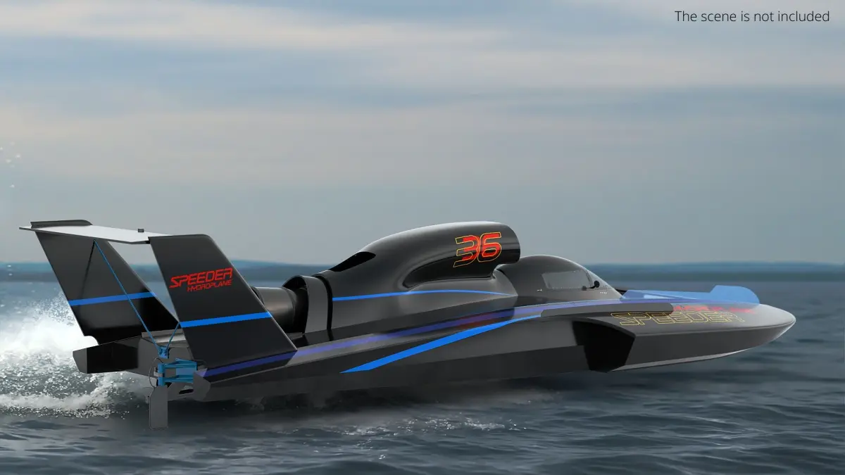 For water sports, hydroplane racing events, boating competitions, marine engineering, sports equipment exhibitions, virtual simulations, 3D design projects, and promotional activities in the racing industry.