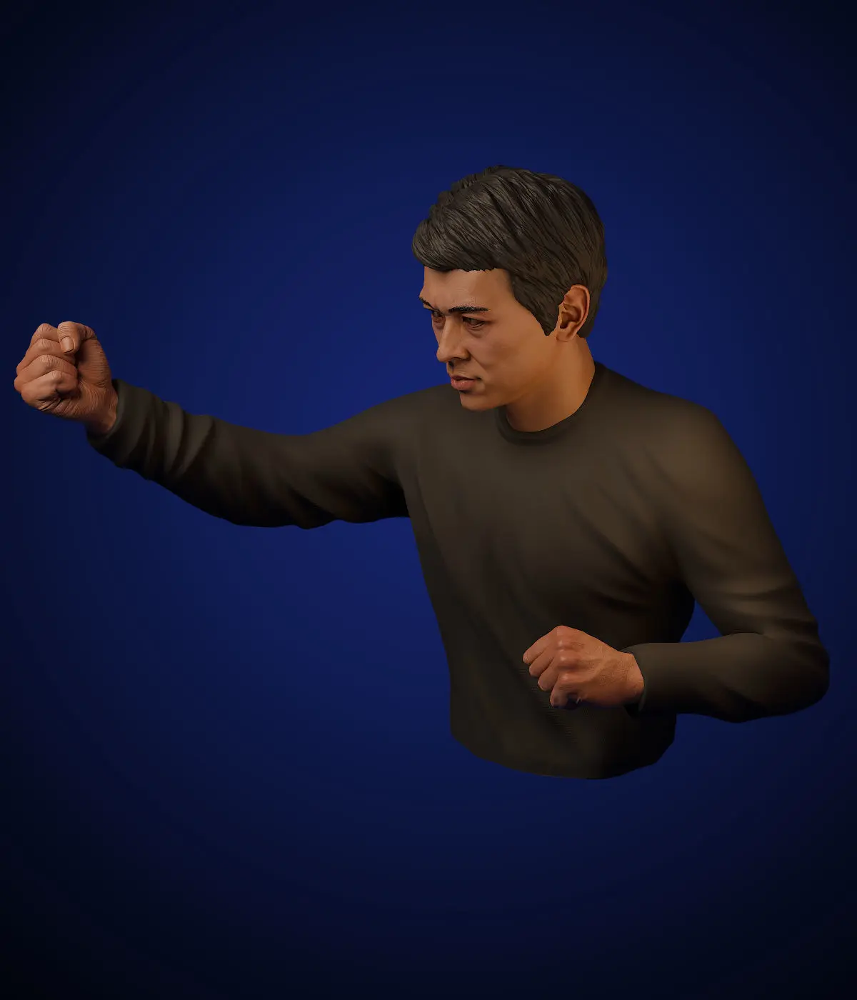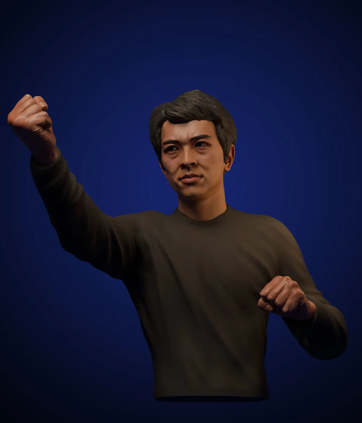 A but of an action movie actor - Jet Li in his most known battle stance.Legendary martial artist and kung-fu movies star.Most known for Lethal weapon, The One, Once Upon a Time in China, Fist of the Legend etc.