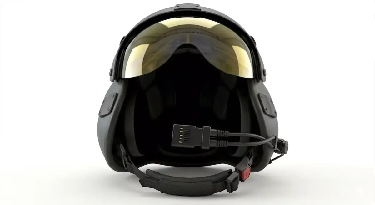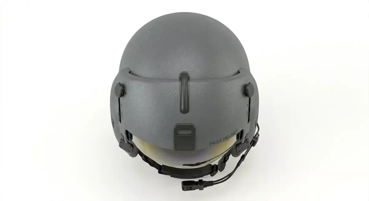 This highly detailed 3D model depicts a modern military-grade pilot helmet, specifically engineered to showcase high-tech aerospace materials and functional design. The asset features a lightweight composite shell with a matte carbon-fiber finish, complemented by a dual-lens visor system that utilizes realistic iridescent and smoke-tinted PBR materials. The model is equipped with intricate tactical components, including an adjustable oxygen mask bayonet receiver, integrated communication ports, and a padded neck-roll lining with authentic fabric textures. Designed for high-end aeronautical simulations and military visualizations, this hero asset captures the precise mechanical aesthetic of modern flight gear.