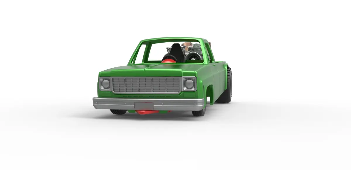 The model consists of parts: Body front part, Body rear part, Engine part 1-3, Front bumper, Front insert, Front rims, Front tires, Rear bumper, Rear rims, Rear tires, Seat, Shell front part, Shell rear part, Steering wheel, Tank.