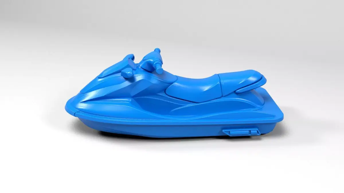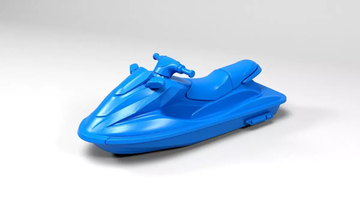 This jet ski model is designed as a single piece, ensuring hassle-free production straight from the printer without additional assembly.