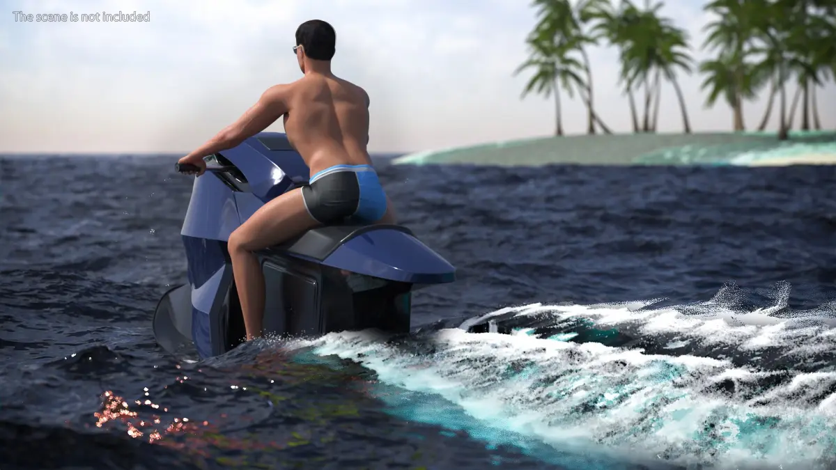 Jet Ski Blue with Rider is a three-dimensional model of a person riding a sleek and modern personal watercraft.